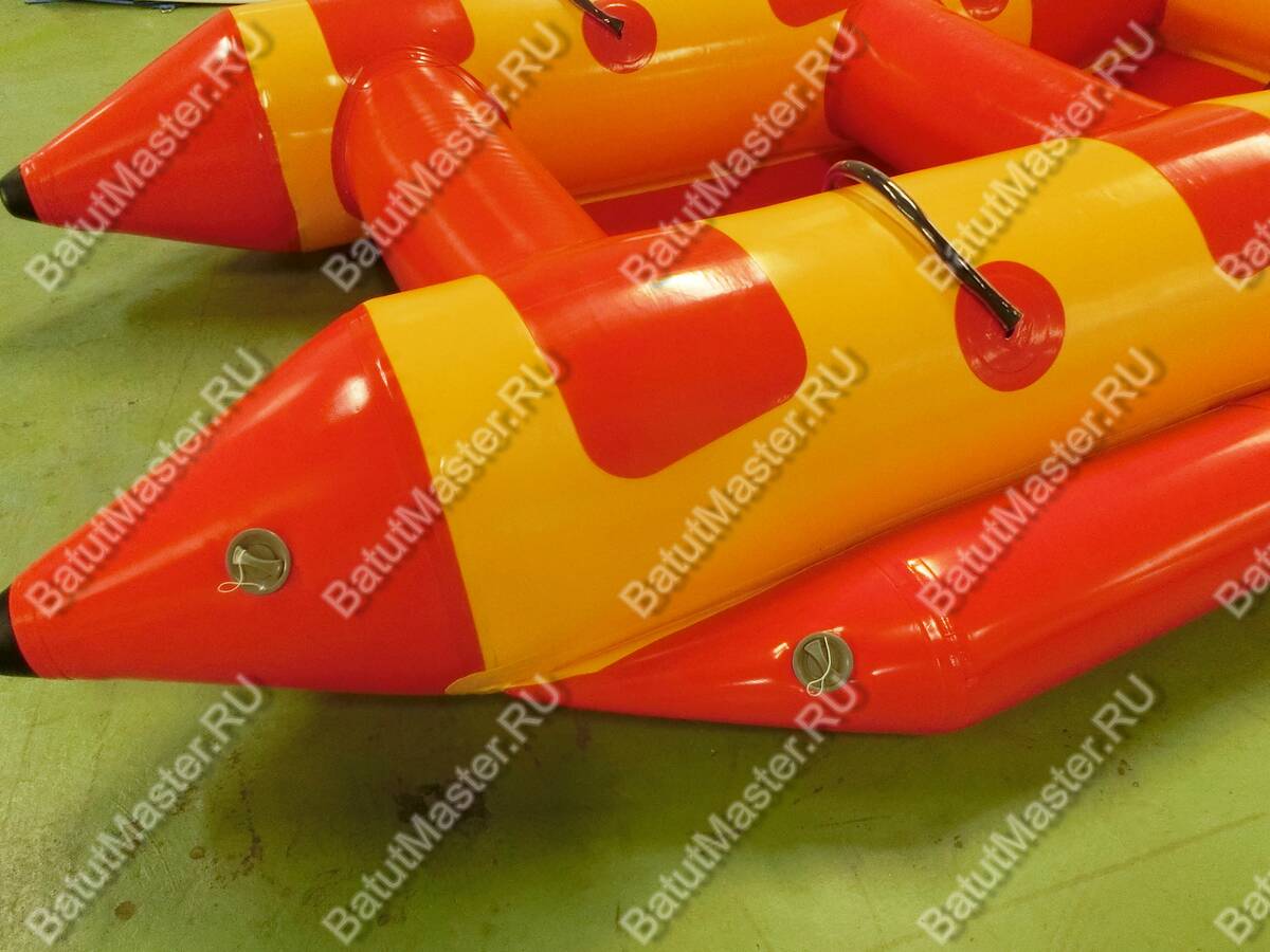 Благодаря заметному дизайну в красно-жёлтом цвете, банан моментально привлекает внимание и становится главным развлечением на пляже. Материал — усиленный армированный ПВХ с плотностью 1100 г/м² — гарантирует высокую прочность, устойчивость к истиранию и температурным перепадам. Ткань непрозрачная, швы сварены внахлёст, что делает изделие герметичным и долговечным.
