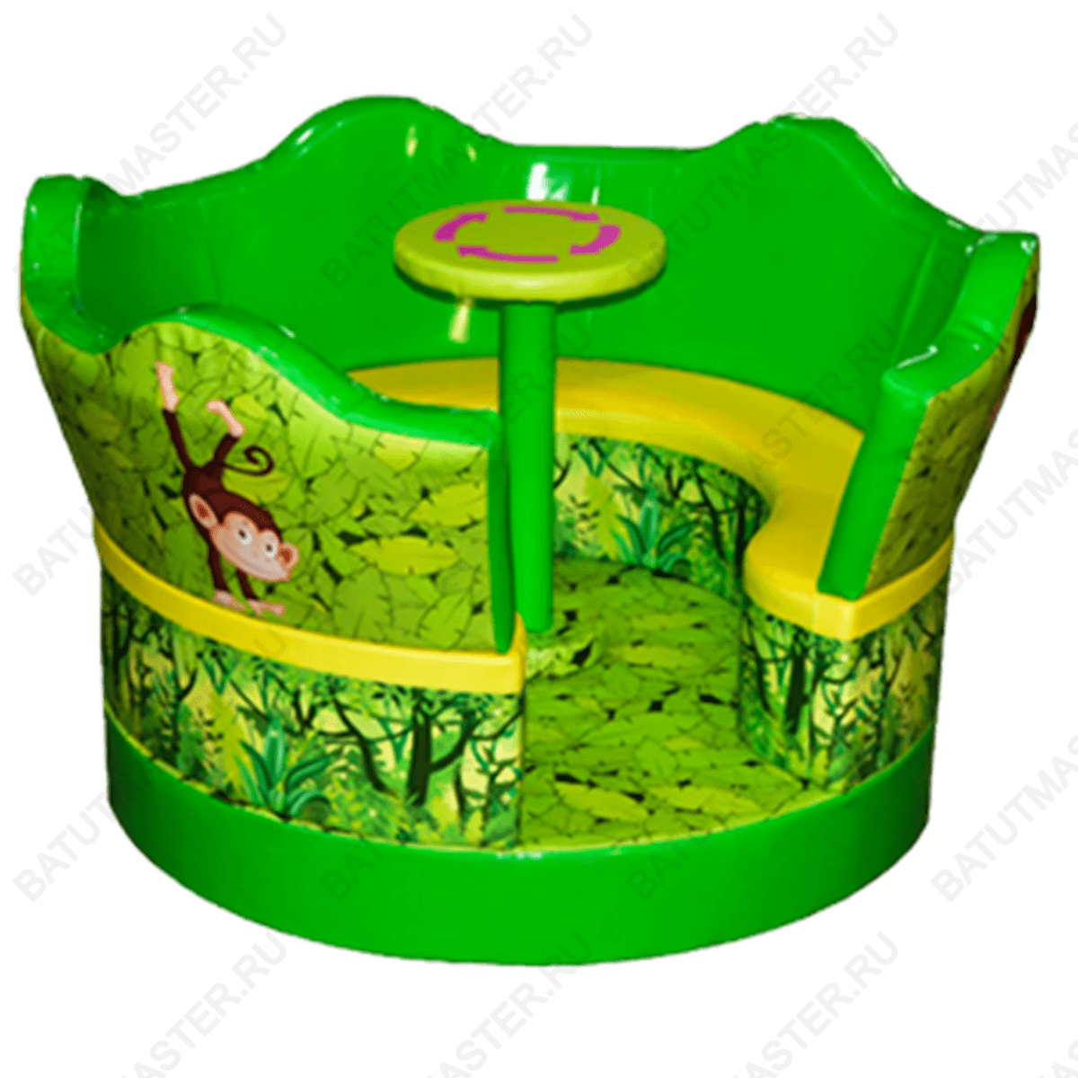Детская электрическая карусель «Джунгли» — это яркий и увлекательный элемент детских игровых зон, который мгновенно погружает малышей в атмосферу тропических приключений. Её стильный и насыщенный дизайн с зелёной листвой и забавной обезьянкой станет центром внимания на любой площадке. Компактные размеры (1.9x1.9x0.7 м) делают карусель идеальной для установки как внутри помещений, так и на открытых площадках при соблюдении условий эксплуатации.