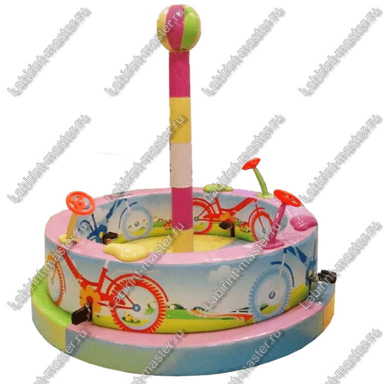 Если спросить детей, какой у них любимый аттракцион, то многие ответят, что карусель. И в этом нет ничего удивительного, ведь карусели за счёт своего плавного движения способны поднять настроение. Поэтому в игровом лабиринте лучше всего в качестве дополнительного развлечения установить карусель "Экстремальный велотрек" .