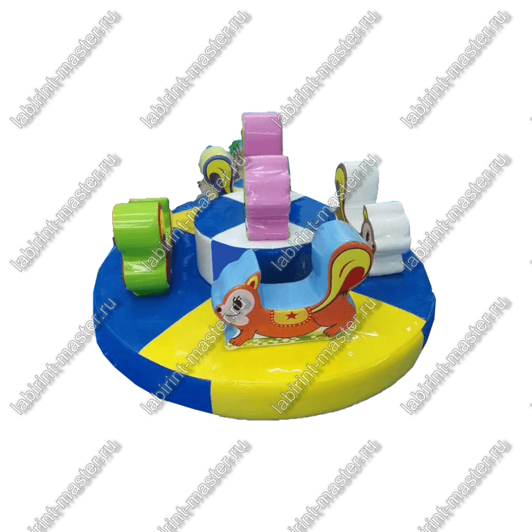 Карусель может работать в механическом режиме или с установленным двигателем. При запуске дети садятся на мягкие сиденья в виде белочек, и карусель начинает вращаться с комфортной скоростью. Благодаря удобному расположению посадочных мест даже малыши смогут легко взобраться на карусель без помощи взрослых.