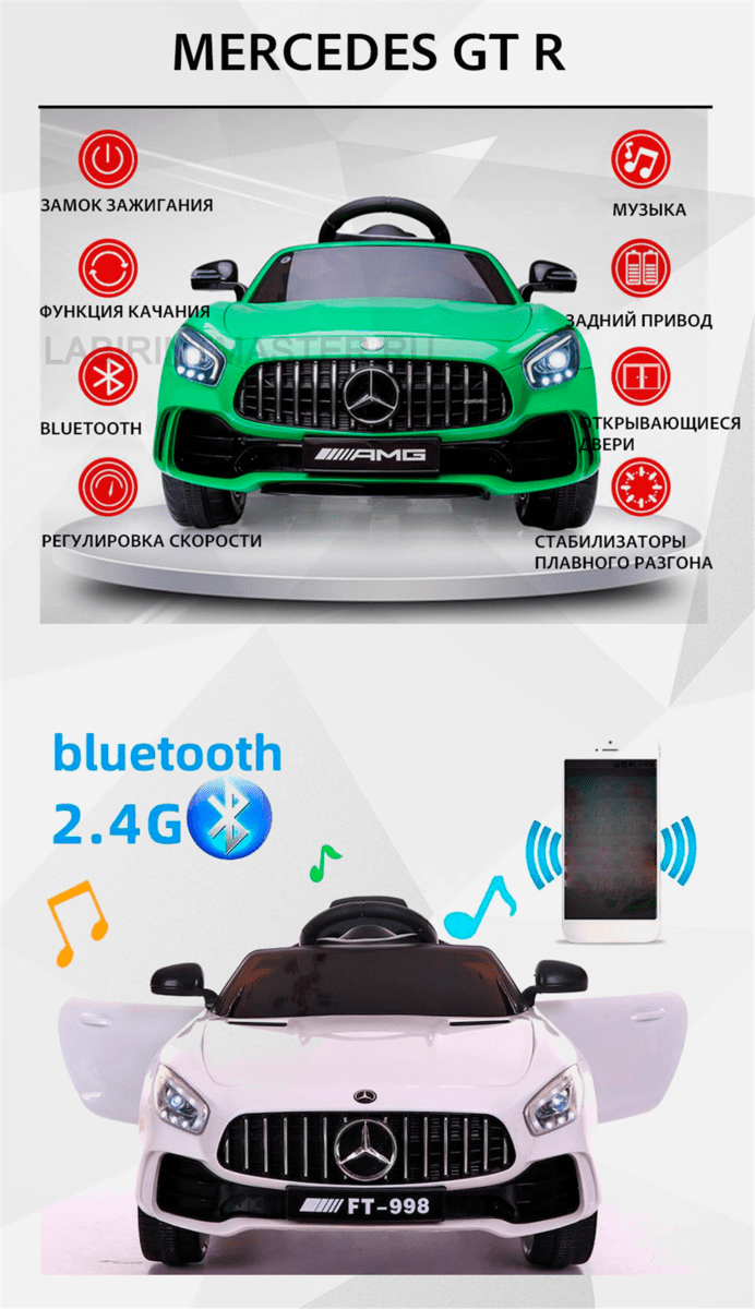 🛒 Электромобиль детский "Mercedes GT R" 12V купить за 0.0 ₽ | 🚚 Оплата при получении!