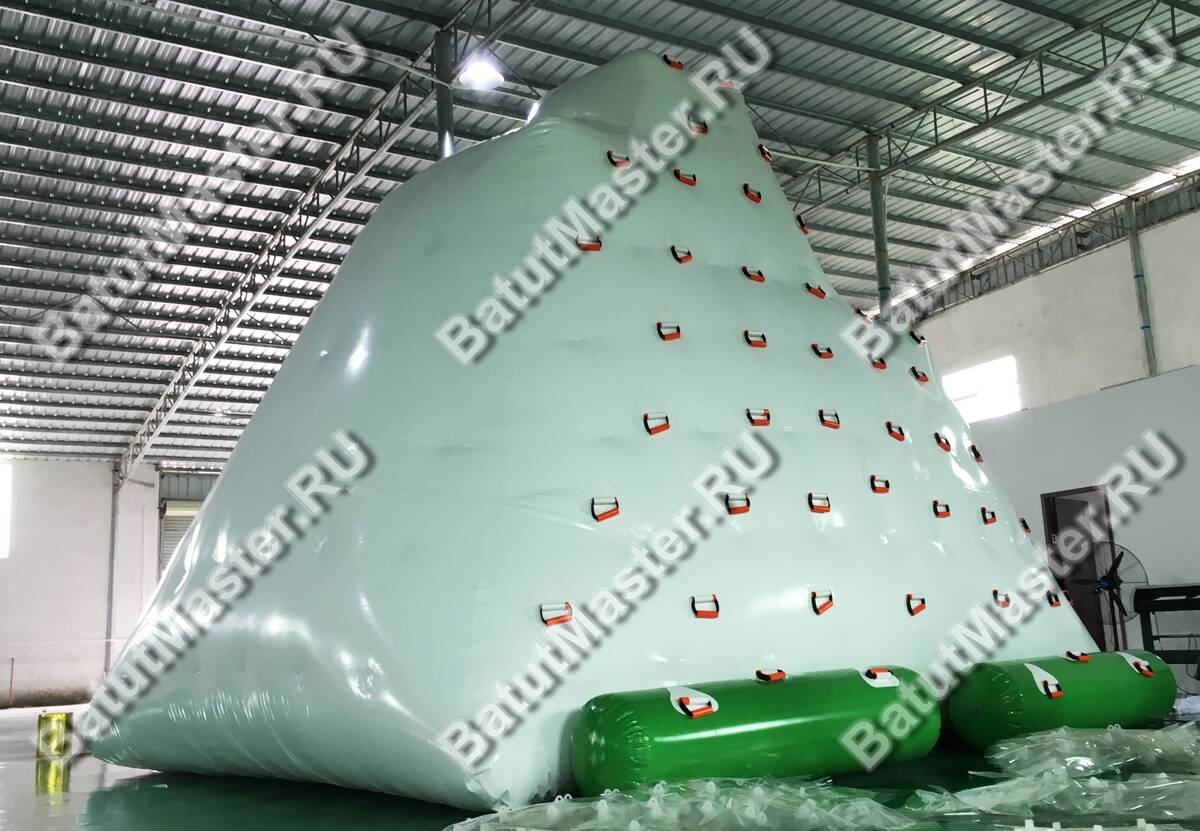 Надувной скалодром «Айсберг» — это не просто яркий аттракцион, это полноценный центр водных приключений, который моментально привлекает внимание и превращает обычный бассейн или пляжную зону в территорию веселья и спорта. Элемент аквапарка выполнен в форме стилизованной ледяной горы — белый цвет поверхности с ярко-зелёными баллонами в основании и многочисленными красными зацепами создают эффектную визуальную композицию.