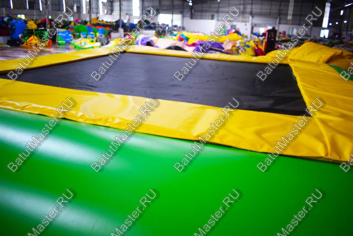 Благодаря усиленному армированному ПВХ с плотностью 1100 г/м² батут устойчив к ультрафиолету, воде и механическим нагрузкам, что позволяет использовать его в условиях высокой посещаемости.