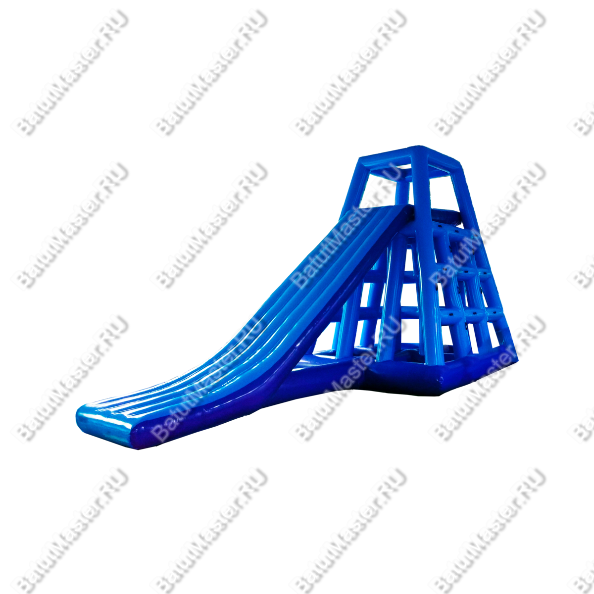 Горка выполнена из усиленного армированного поливинилхлорида толщиной 0,9 мм. Материал непрозрачный, устойчивый к ультрафиолету, не выгорает на солнце и выдерживает температурные колебания от -15°C до +60°C. Швы сварены внахлёст, что обеспечивает полную герметичность и дополнительную прочность.