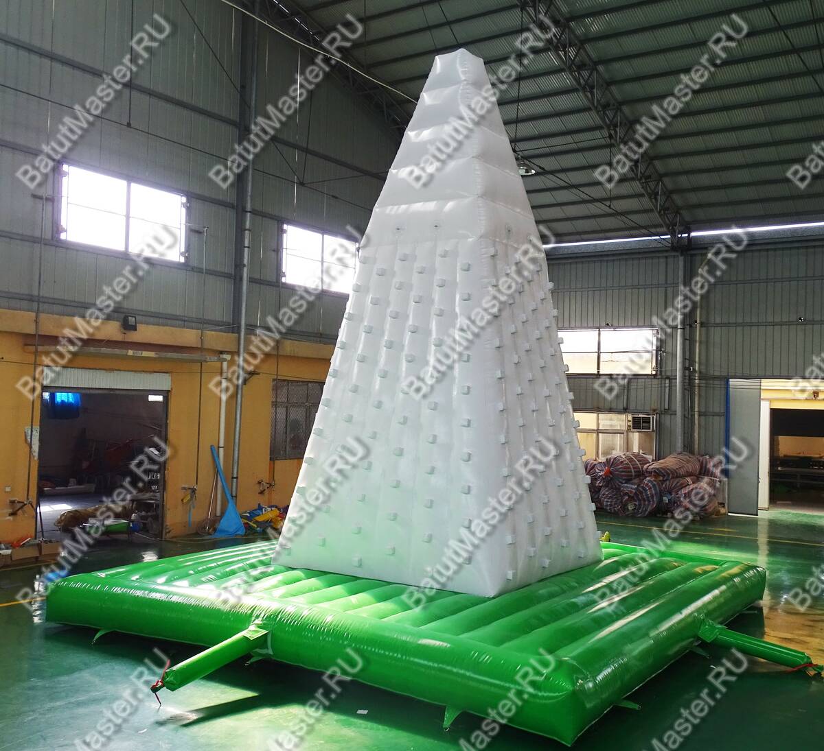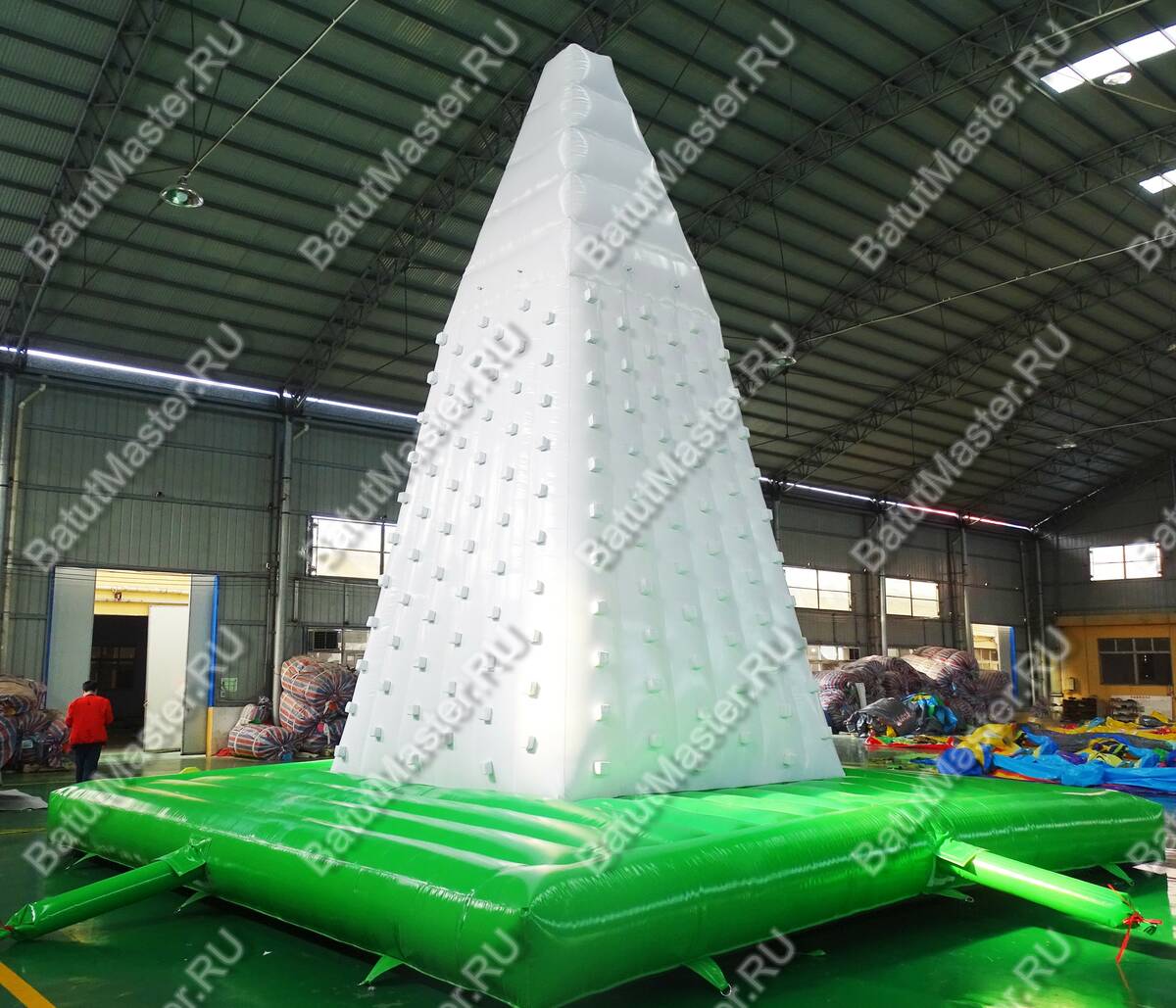 Элемент аквапарка «Снежная гора» — это масштабная надувная конструкция в виде заснеженной горы, установленной на зелёном водном основании. Скалодром высотой 9 метров и площадью основания 8x8 м станет настоящей доминантой в любой водной зоне. Его форма, напоминающая вершину горы, вызывает азарт и желание покорить её у каждого, кто видит аттракцион.
