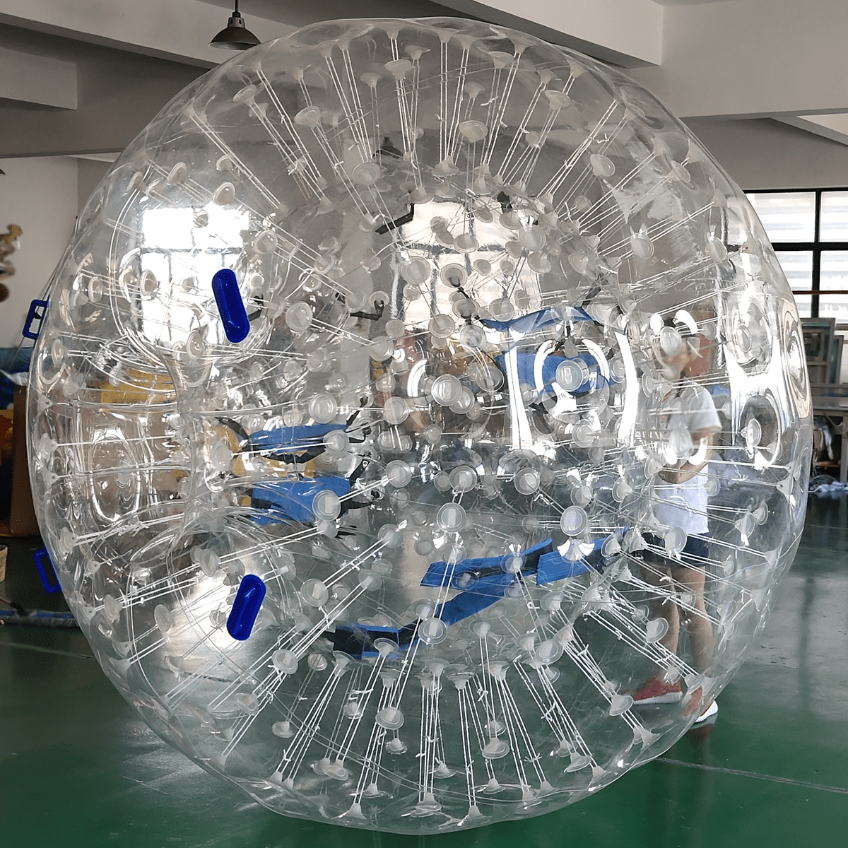 Эта конструкция подходит почти для всех видов зорбинга. Если купить именно эту модель, вы сможете предложить своим клиентам сразу три новых услуги: аквазорбинг, гидрозорбинг, свободные прогулки.