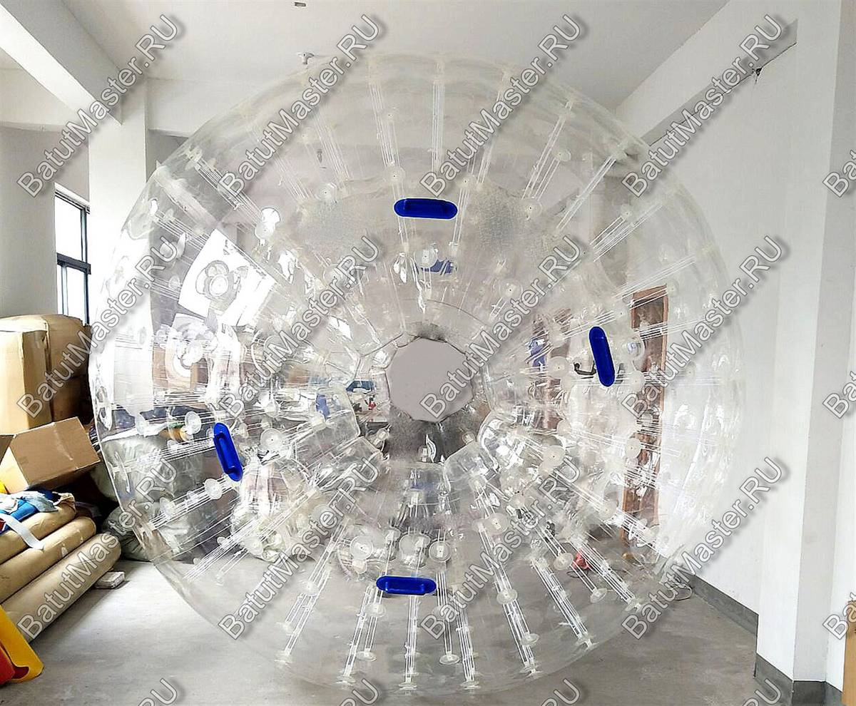 Изготавливается такое изделие из качественного пвх, преимущественно прозрачного цвета. Это позволяет катающемуся видеть направление своего движения. Размер такого шара может быть какой угодно. Есть даже такие, в которые помещаются сразу два человека.