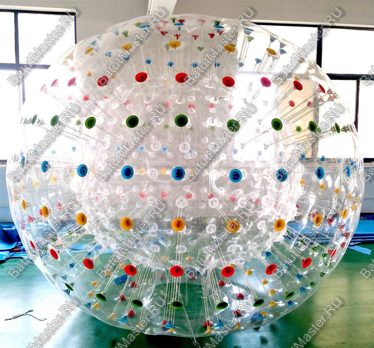 Коммерческий гидро/аква зорб для бизнеса сделан из поливинилхлорида и широко используется в индустрии развлечений. На пляже, в аквапарке можно установить такой атрибут и сдавать в прокат. Это качественный и хороший инструмент для заработка круглый год. В данной комплектации представлено изделие, оснащенное цветными держателями.