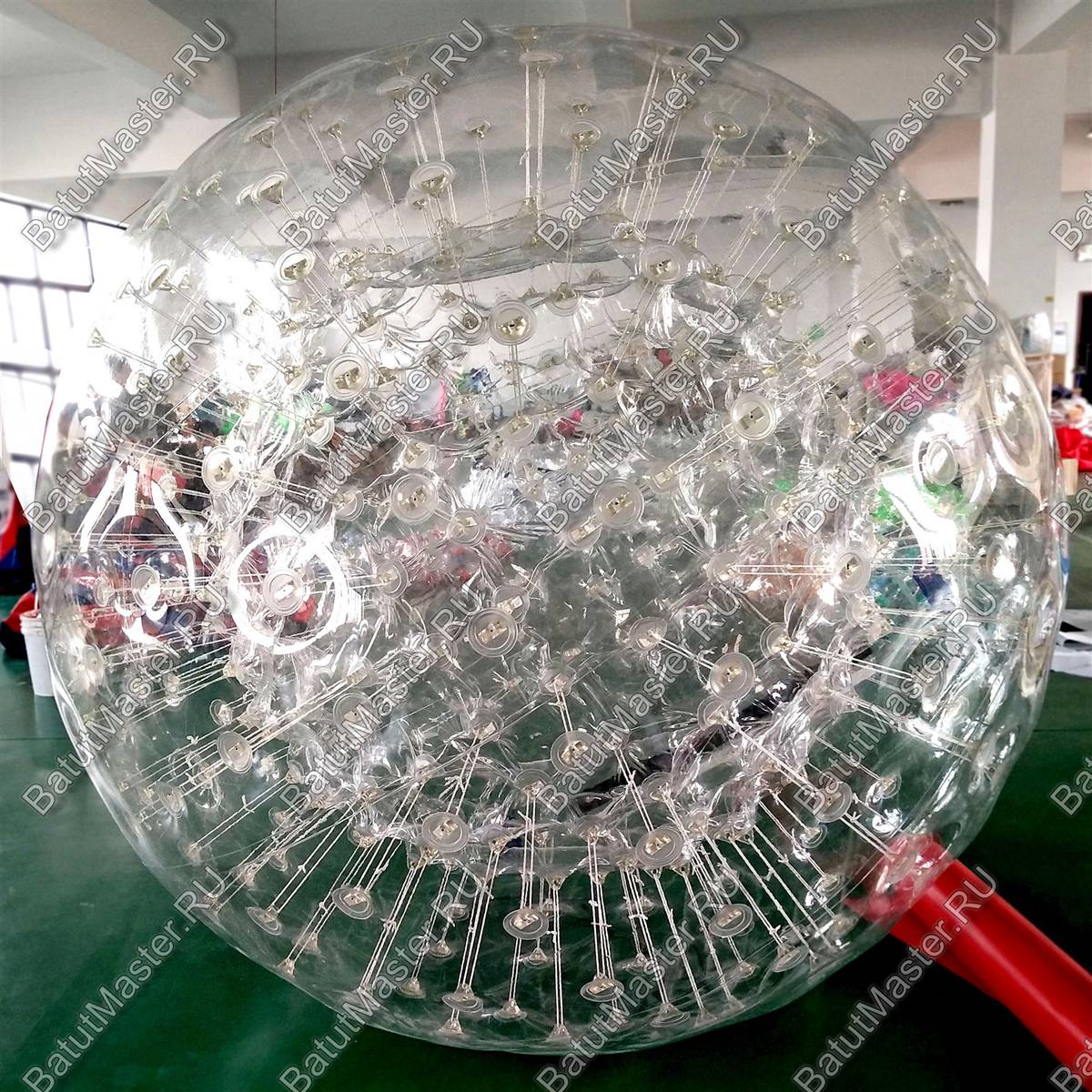 Коммерческий аква зорб для бизнеса выполнен из тпу или пвх. Чаще всего такие изделия производят именно в прозрачном виде для лучшей ориентации катающихся в пространстве. Однако, его можно использовать не только на водоеме, но и на мягкой траве.