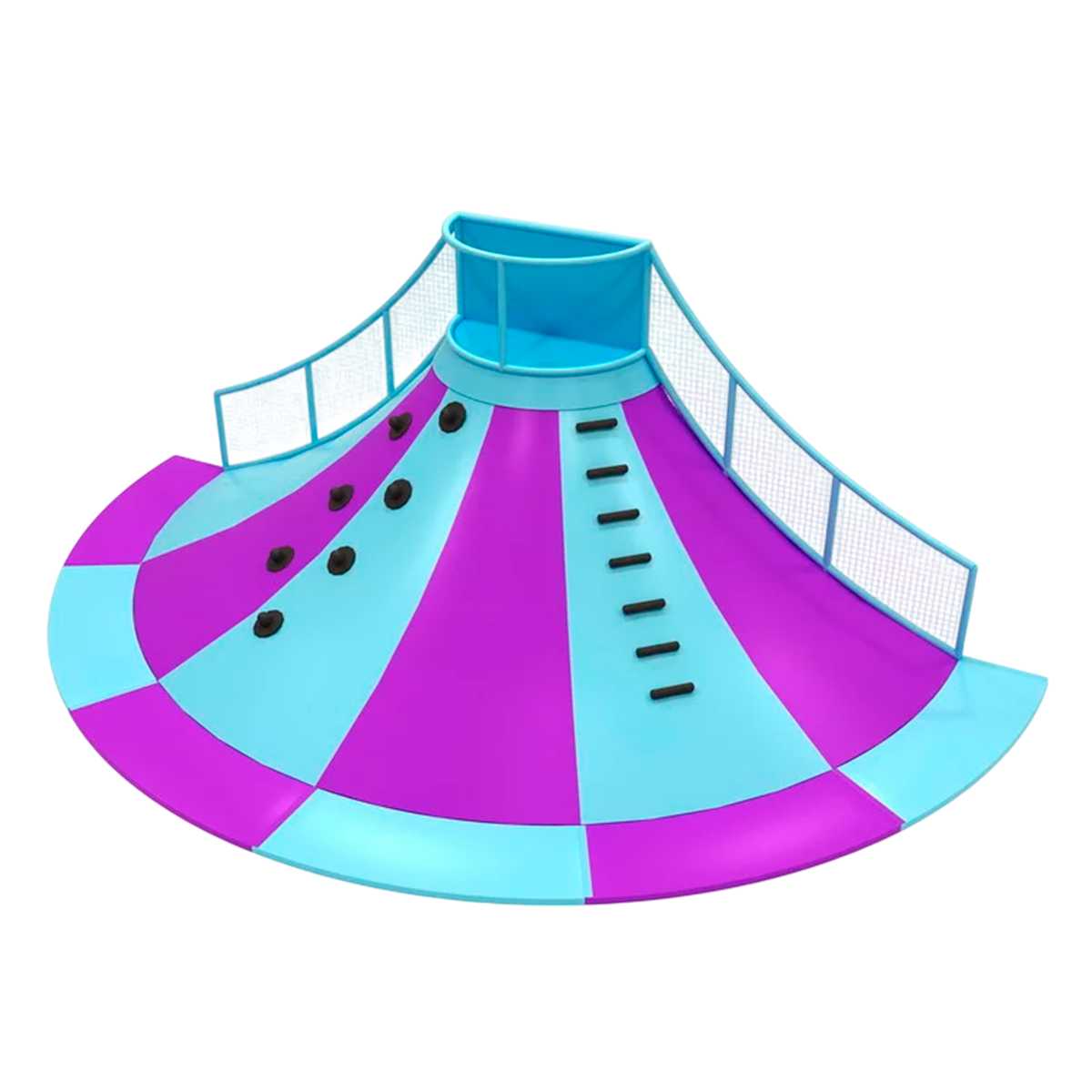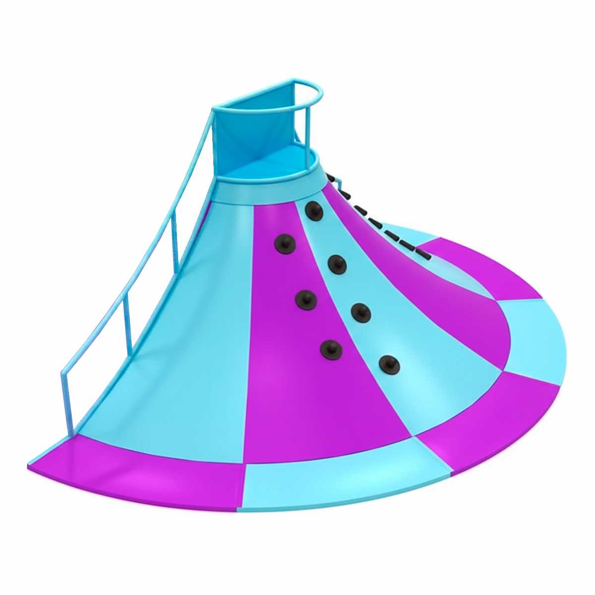 Яркий и привлекательный дизайн: Яркая цветовая палитра из голубого и фиолетового привлекает внимание, а черные зацепы на скалодроме делают его еще более интересным и привлекательным для детей.