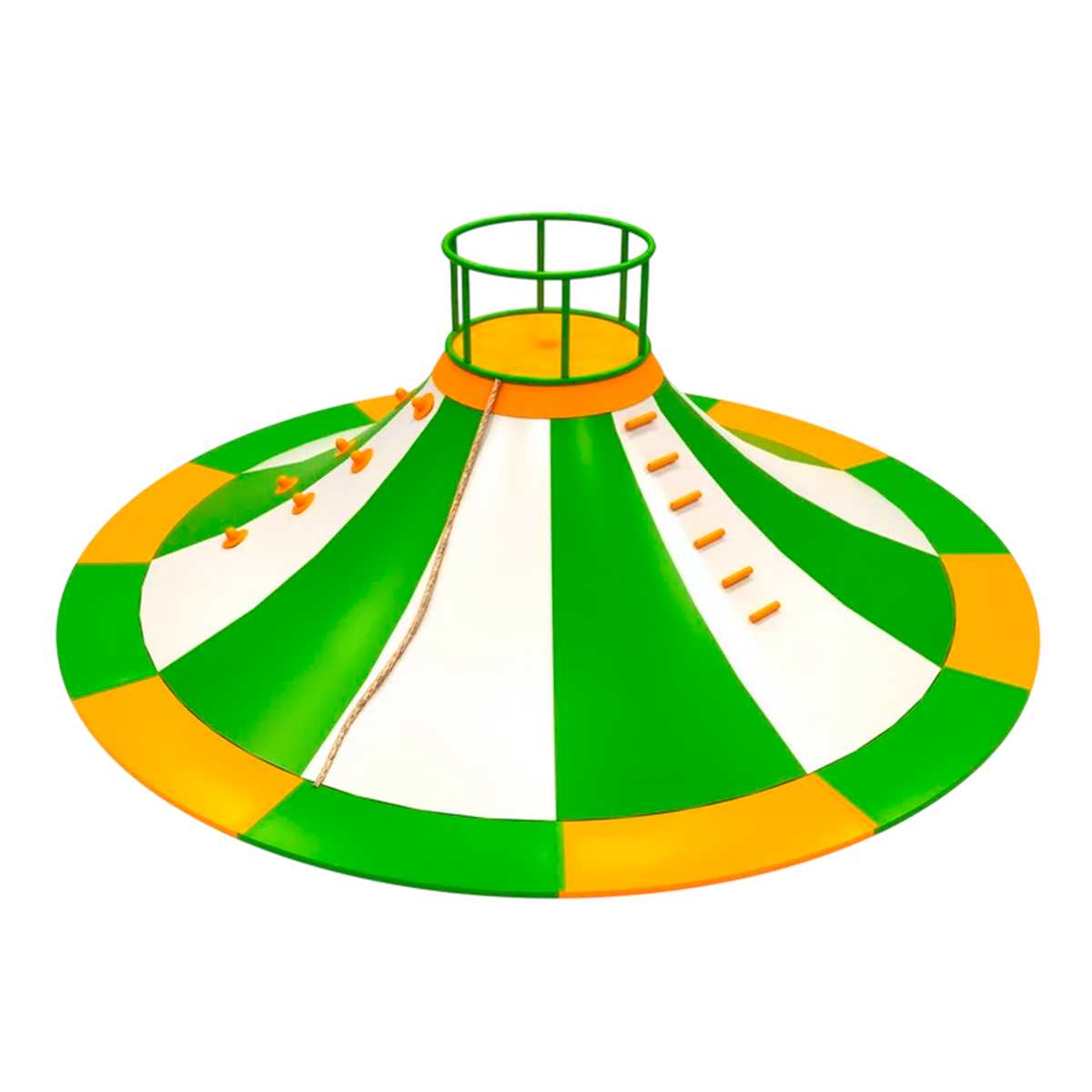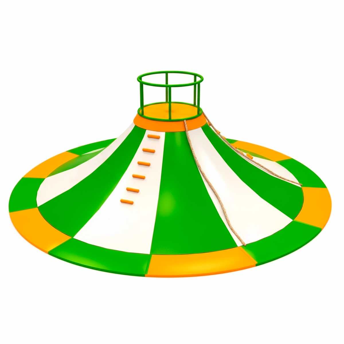 - Безопасность: Все элементы аттракциона выполнены из безопасных материалов, которые не наносят вреда детям при использовании. Яркие зацепы и канаты обеспечивают дополнительную безопасность при лазании, а устойчивый металлокаркас гарантирует надежность.