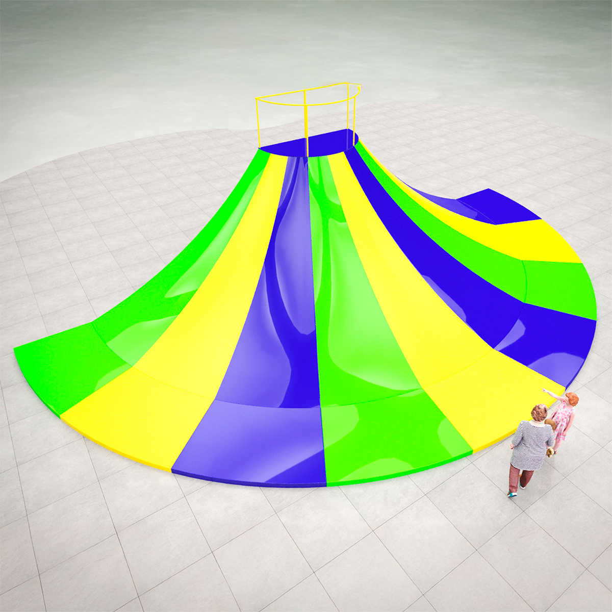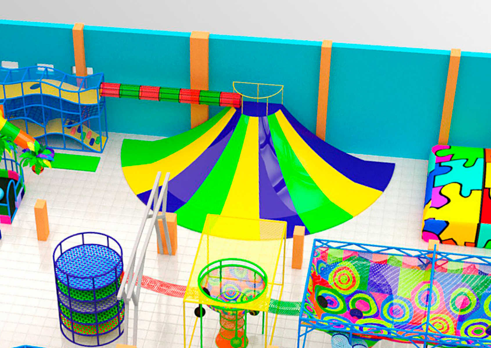 - Яркий и привлекательный дизайн: Красочные полосы и необычный дизайн создают атмосферу веселья и приключений, делая аттракцион центром притяжения на детской площадке.
