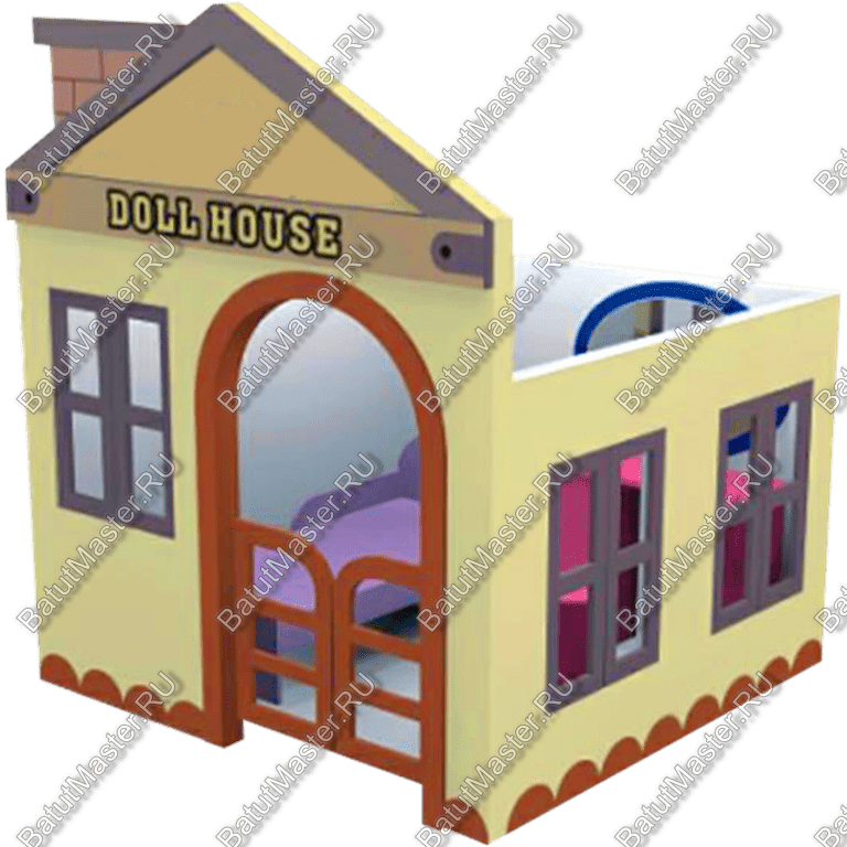 Внутреннее оборудование для игры в этом домике предназначено для игры в куклы. Здесь есть и кроватка, и прочие атрибуты. Домик имеет приятную окраску в спокойных тонах. Но цветовая палитра может быть в других тонах, предложенных клиентом. Главный конструкционный материал стен – высококачественная фанера. После шлифовки ее поверхность покрывается высококачественной грунтовкой и краской. В случае необходимости поверхность можно подвергать мойке с любыми моющими средствами. При габаритах 1200 мм на 1350 мм и при высоте 1200 мм игровой домик представляет собой надежную конструкцию, которая не имеет острых углов. Все выступающие места обработаны.