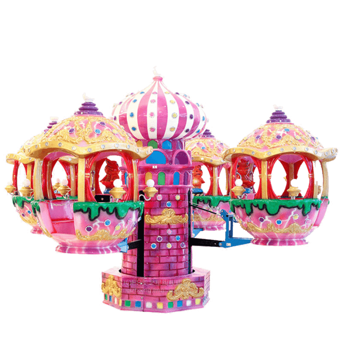 Необычная электрическая карусель отличается от всех остальных своим восточным стилем, каждая кабинка напоминает роскошную карету или беседку восточного императора.
