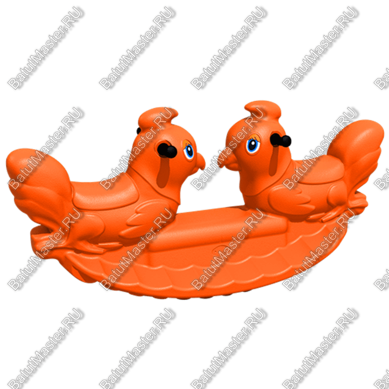 Стилизация качалок для помещений продумывается таким образом, чтобы быть интересной и понятной для любого малыш. Поэтому предлагаемая двухместная качалка представляет собой образ двух птиц, на которых можно раскачиваться. В головках птиц смонтированы очень удобные поручни из пластика. На нижней кромке качалки продуманы подножки. Хвосты птиц являются ограничителями для сидений. Они не позволяют малышам сползать с сидения назад и падать.