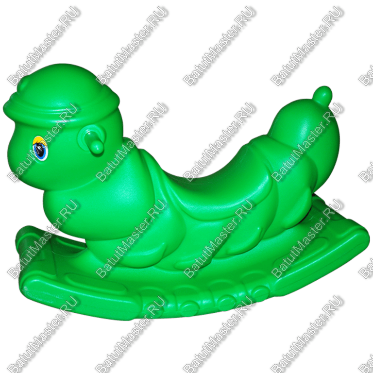 Качалка ТК06 совсем не афиширует положительное отношение к вредителям садов – гусеницам. Это одноместная качалка. Форма гусеницы вылита на широком изогнутом основании. Габариты 0,700 х 0,275 х 0,480 метра. При такой высоте и ширине основания игрушка очень устойчива, а потому безопасна для игры малыша. Безопасности добавляют поручни, которые торчат из головы гусеницы, а за сидением положение малыша поддерживает хвост гусеницы. Основание качалки имеют широкие подножки, позволяющие малышу самостоятельно садиться на игрушку, раскачиваться и так же без помощи посторонних с нее вставать.