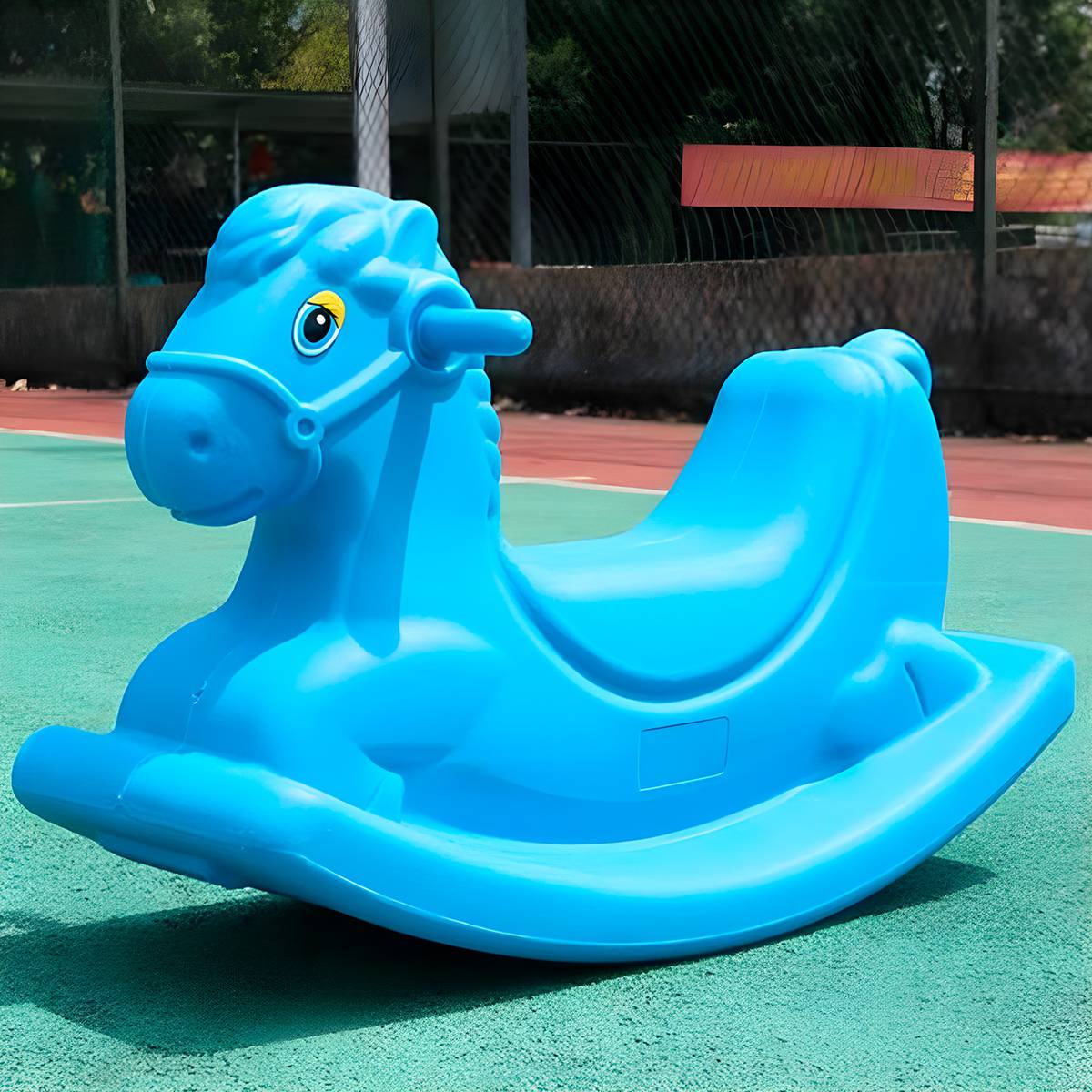 Оборудование имеет схожесть с популярным героем-лошадкой Конёк-горбунок из мультфильма и изготовлено из упрочненного пластика, но достаточно легкое. Устойчивость игрушки на полу обеспечивает широкое основание. В игре качалка не представляет никаких сложностей для малыша. Он очень легко оседлает игрушку и также легко с ней расстанется.