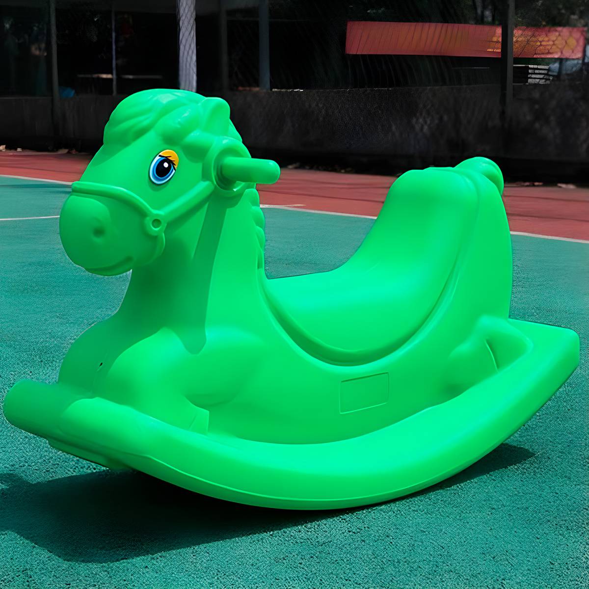 Оборудование имеет схожесть с популярным героем-лошадкой Конёк-горбунок из мультфильма и изготовлено из упрочненного пластика, но достаточно легкое. Устойчивость игрушки на полу обеспечивает широкое основание. В игре качалка не представляет никаких сложностей для малыша. Он очень легко оседлает игрушку и также легко с ней расстанется.