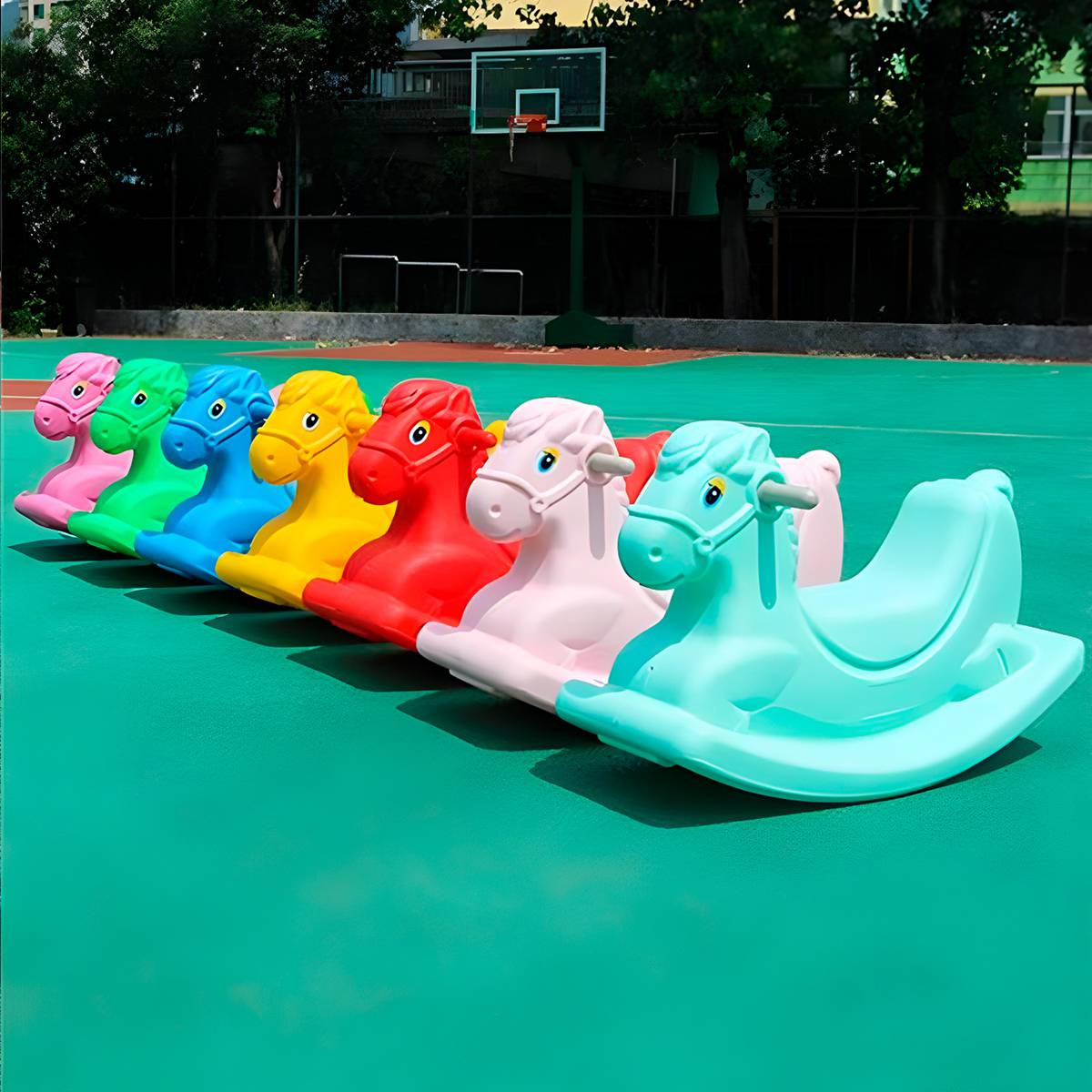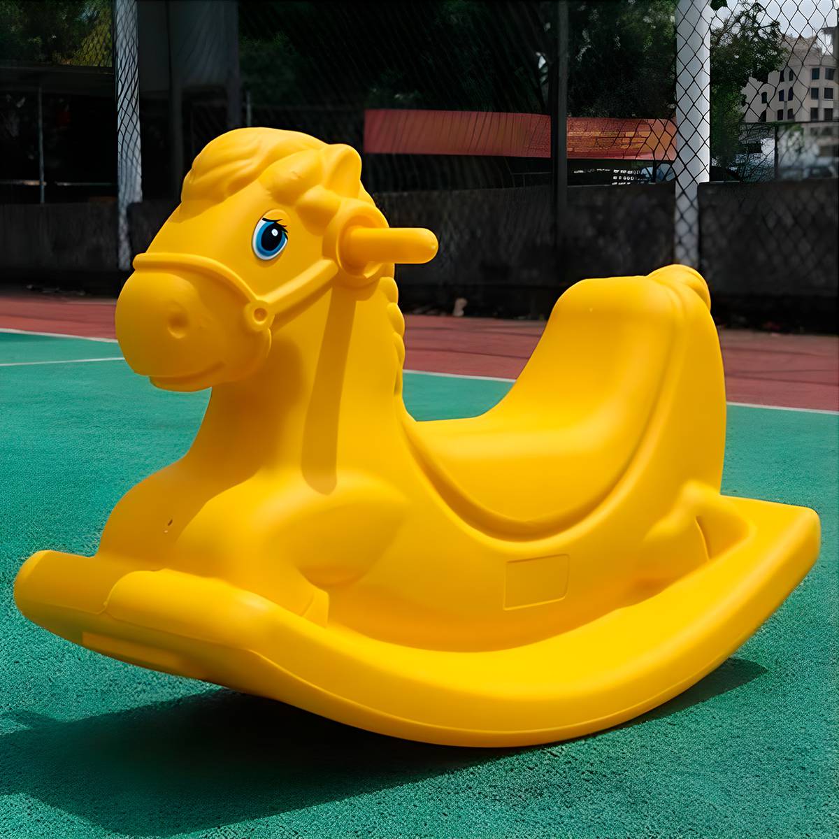Оборудование имеет схожесть с популярным героем-лошадкой Конёк-горбунок из мультфильма и изготовлено из упрочненного пластика, но достаточно легкое. Устойчивость игрушки на полу обеспечивает широкое основание. В игре качалка не представляет никаких сложностей для малыша. Он очень легко оседлает игрушку и также легко с ней расстанется.