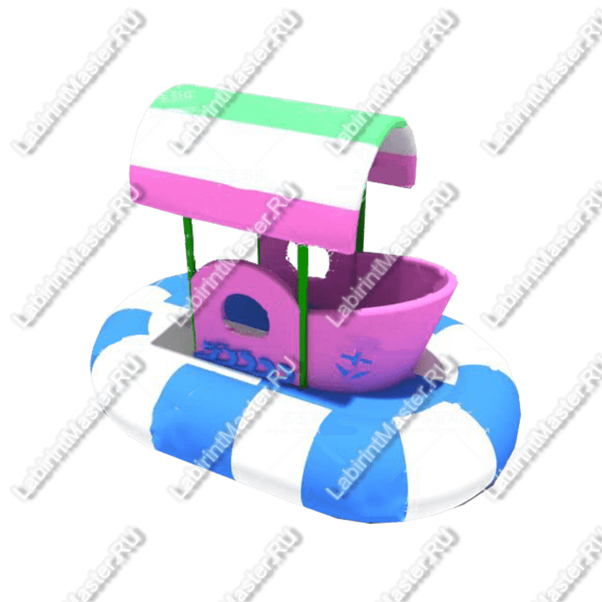 Лодка установлена на большом мягком основании, которое пружинит при раскачивании. Сама лодка имеет очень полезную особенность конструкции – крышу. Навес спасёт детей от палящего солнца или мелкого дождика, если аттракцион находится на улице.