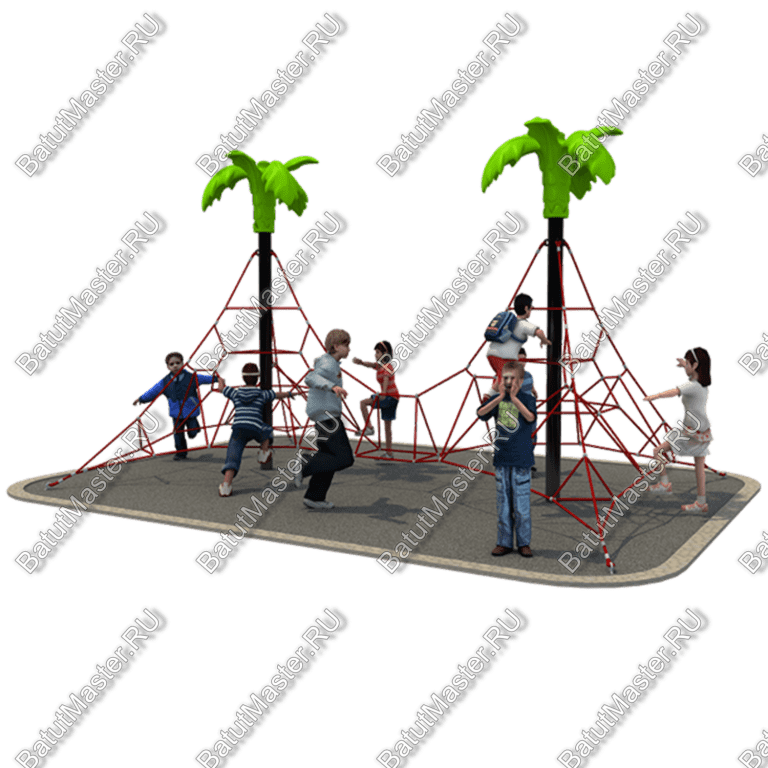 Канатный комплекс с двумя зелеными пальмами – очень интересный и полезный для развития малышей. Он позволит многому научиться и полезно провести свое время. Отличное настроение каждый день гарантировано! Конструкцию можно дополнять подвесными снарядами.