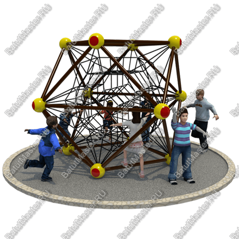 Данный игровой комплекс – небольших размеров, но очень красивый и функциональный! Он сделает ваш двор интересным, ярким и увлекательным для детей. Можно придумывать самые разные игры: лазать, висеть, карабкаться на вершину и т.д. Материал: Оцинкованные трубы; пластик, получаемый методом ротационного формования; канат: Ø 16 мм