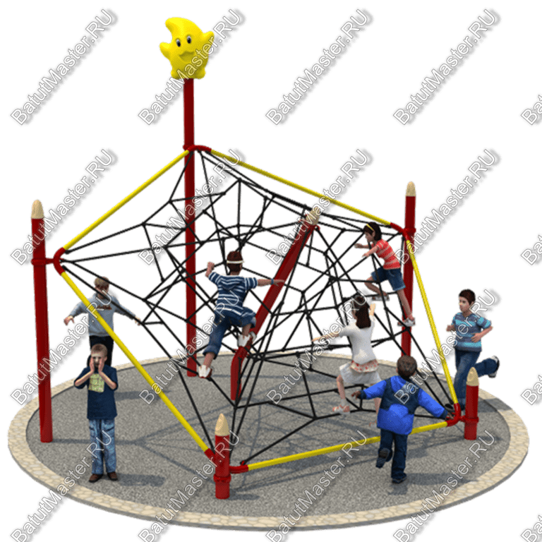 Современный лаз станет настоящим украшением дворовой территории или городского парка. По такому лазу детям очень нравится лазить, тем самым укрепляя мышцы рук и ног. Материал: Оцинкованные трубы; пластик, получаемый методом ротационного формования; канат: Ø 16 мм