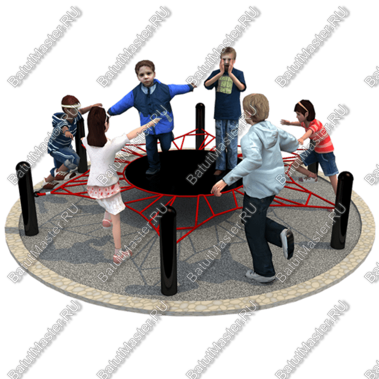 Необычный канатный лаз может привлечь внимание, как детей, так и взрослых. С помощью него можно развить ловкость и координацию движений. Данный лаз можно использовать в качестве батута. Материал: Оцинкованные трубы, канат: Ø 16 мм