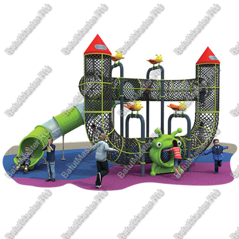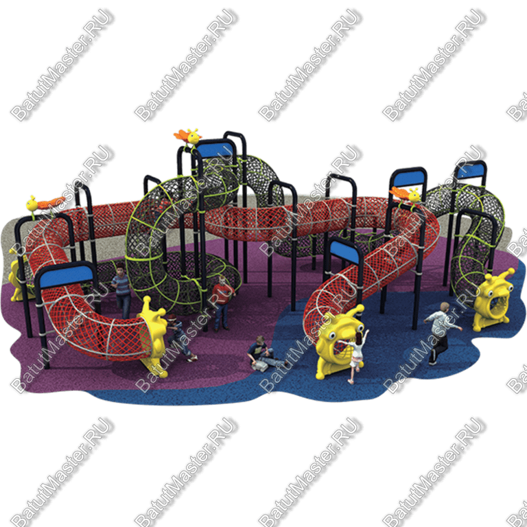 Дети будут заняты с утра и до позднего вечера полезными для здоровья активными играми на свежем воздухе. На детском игровом комплексе из канатного лабиринта и горки, ребенок найдет для себя множество развлечений. Материал: Оцинкованные трубы; пластик, получаемый методом ротационного формования; трос в оплетке: Ø 12 мм