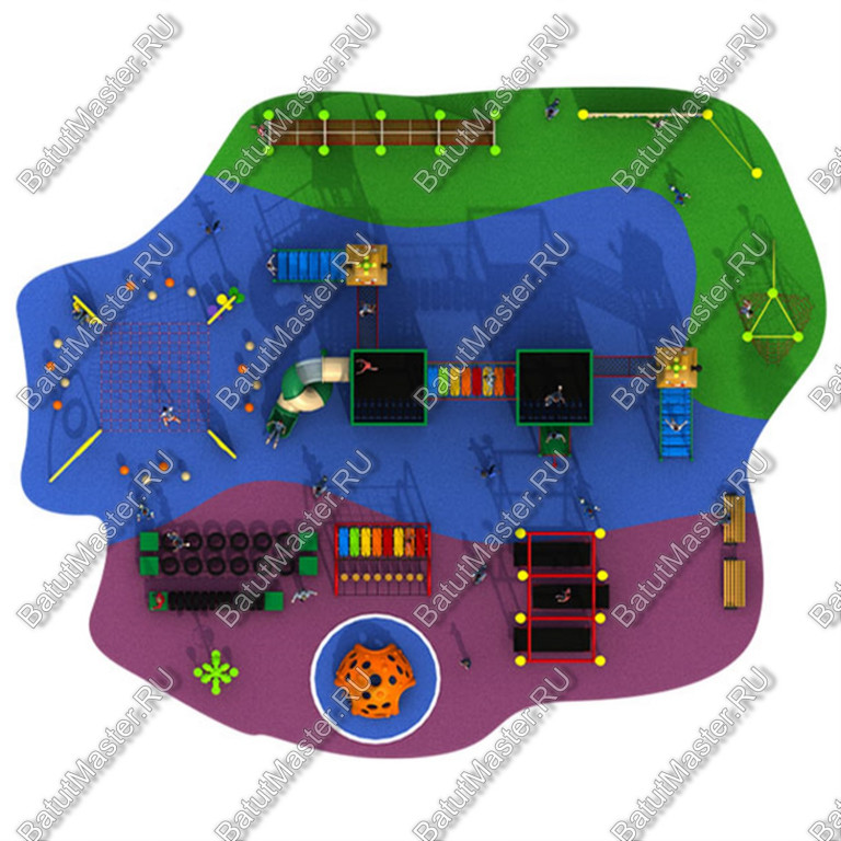 Это типовые проекты комплексов из лазов, в реальности выглядят, как на фотографии. Цена так же дана за комплекс. Материал: Оцинкованные трубы; пластик, получаемый методом ротационного формования; трос в оплетке: Ø 12 мм; канат: Ø 16 мм