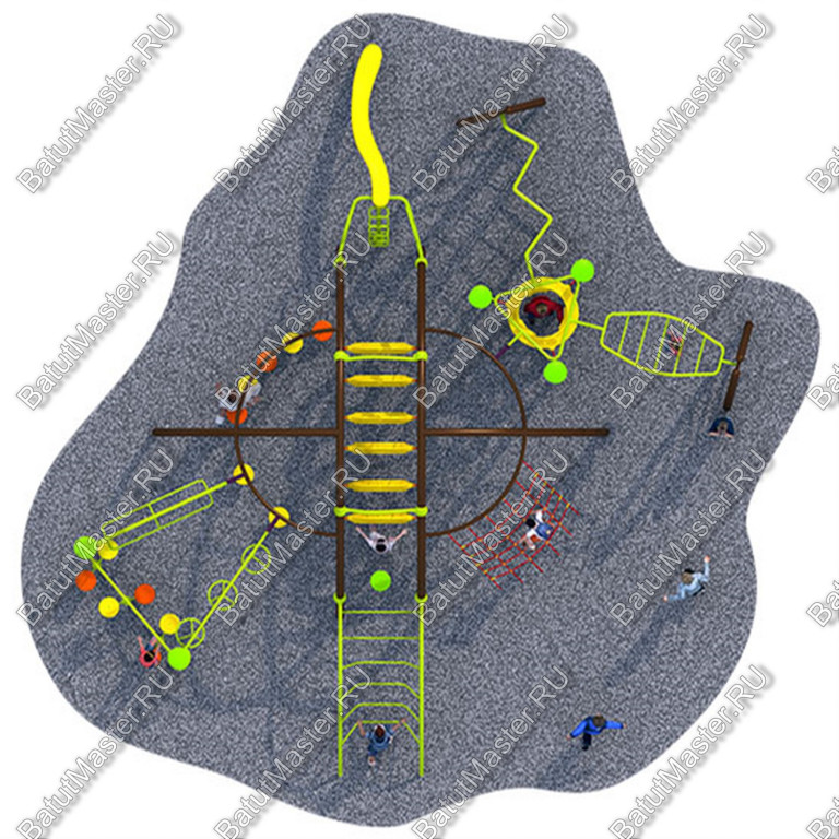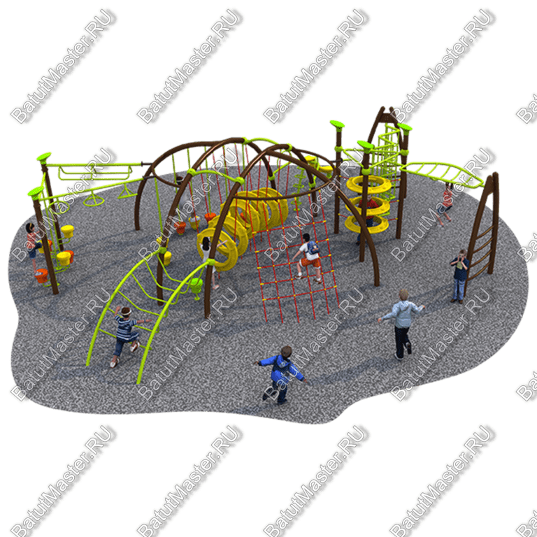 Этот игровой комплекс – очень большой и красивый. Он станет украшением абсолютно любого двора. На нем так весело играть с друзьями, учиться лазать, прыгать и делать различные трюки. Такая конструкция предназначена не только для развлечений, но и для физического развития детей. Она станет отличным приобретением на долгие годы! Материал: Оцинкованные трубы; пластик, получаемый методом ротационного формования; канат: Ø 16 мм