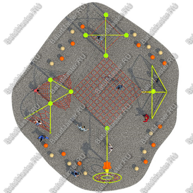 Материал: Оцинкованные трубы; пластик, получаемый методом ротационного формования; канат: Ø 16 мм