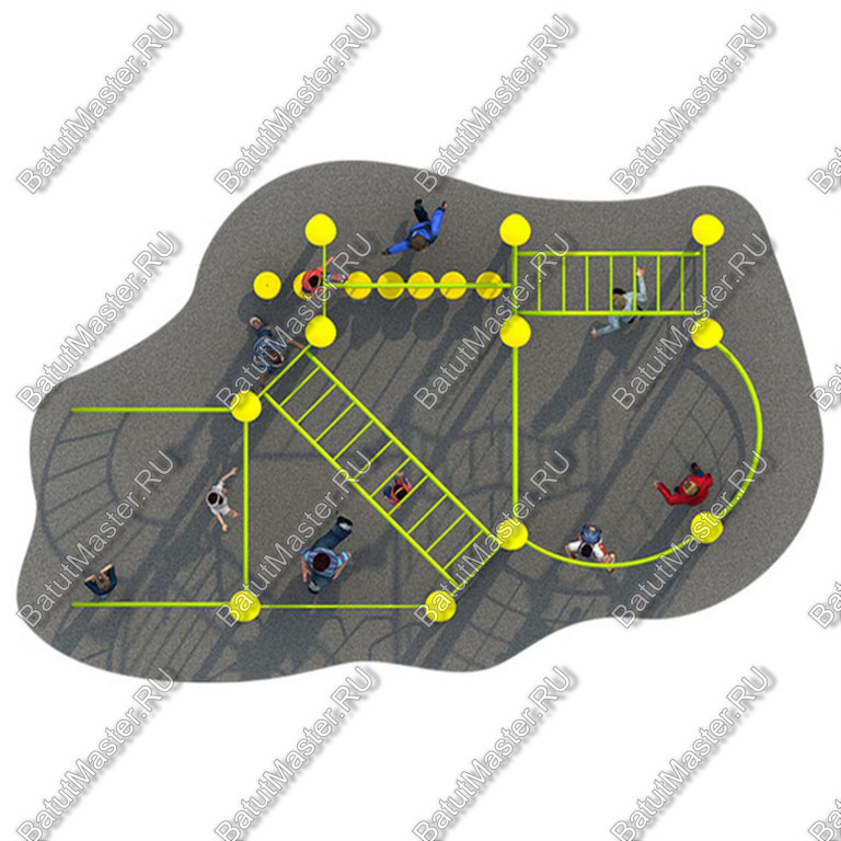 Тренировки на спортивном комплексе научат детей не только ловкости, но и осторожности, а также разовьют быструю реакцию. Материал: Оцинкованные трубы; пластик, получаемый методом ротационного формования; канат: Ø 16 мм