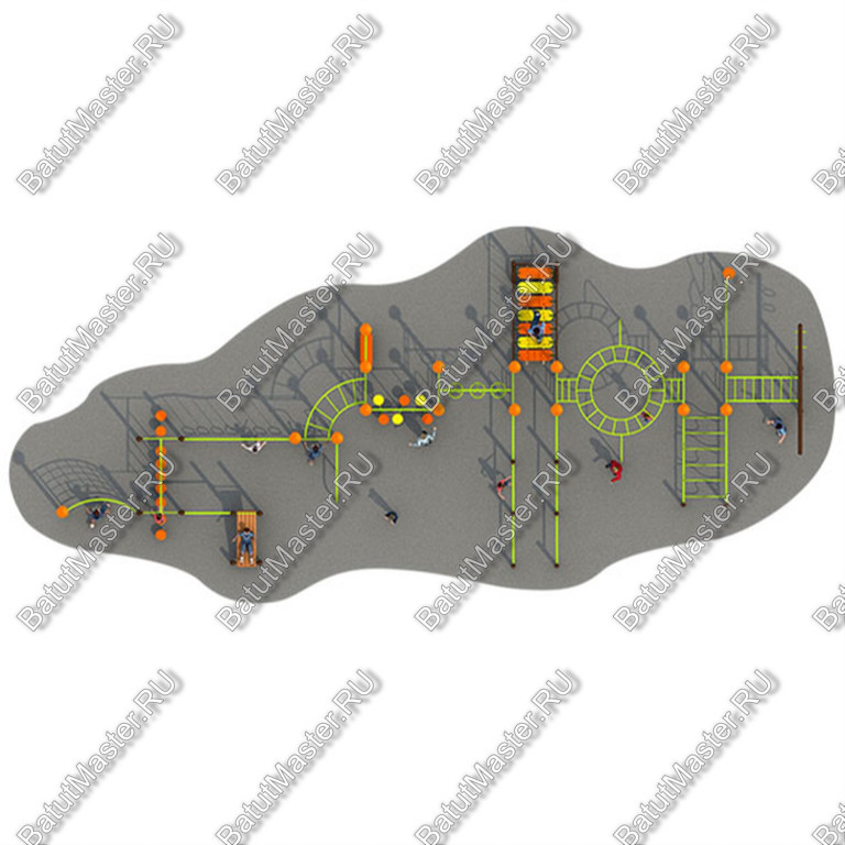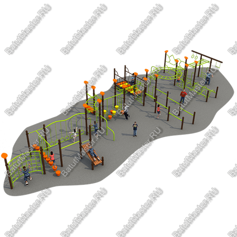 Данный детский спортивный комплекс предназначен для установки на детских площадках, в парковых зонах, частных домах, детских садах и школах. Спорткомплексы помогают развивать у детей такие качества как: выносливость, равновесие, координацию движений в пространстве, быстроту реакции и т.д. Материал: Оцинкованные трубы; пластик, получаемый методом ротационного формования; канат: Ø 16 мм