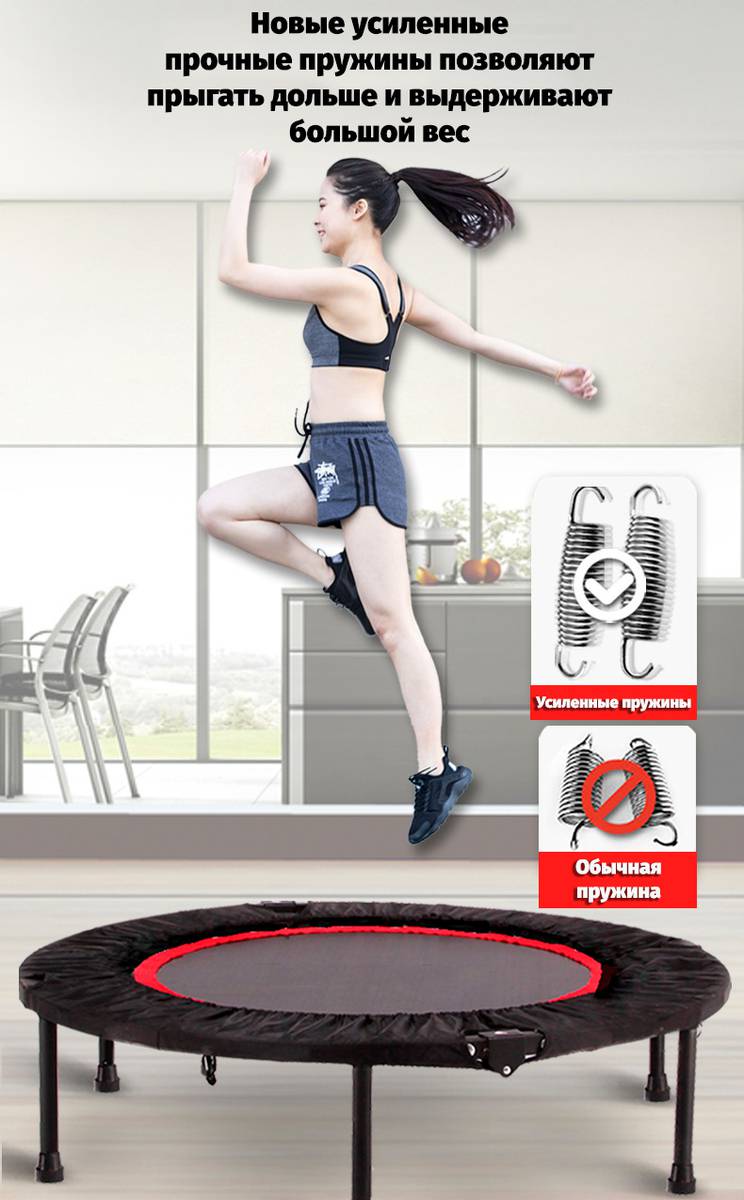 - прочные ножки из высококачественной стали гарантируют устойчивость при прыжках;