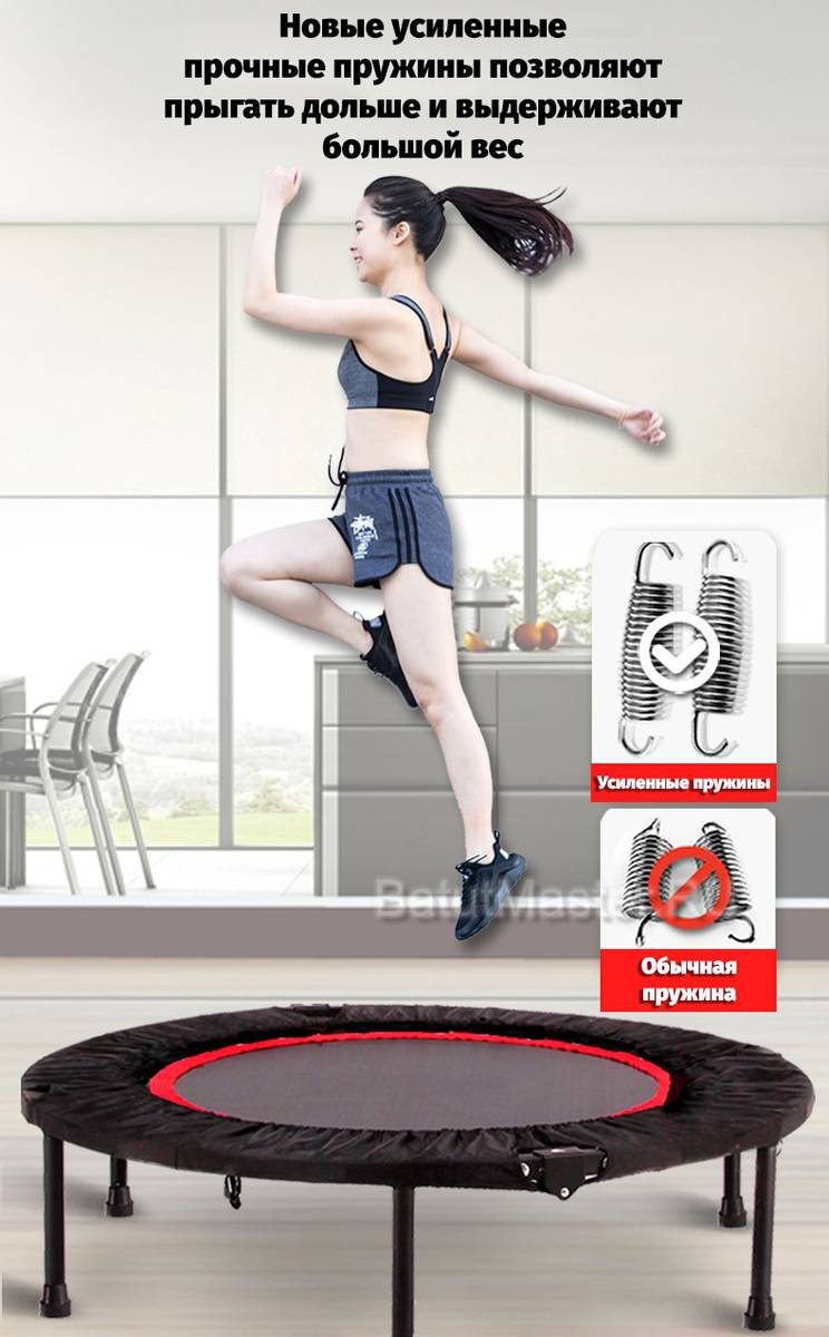 Благодаря продуманным размерам и прочной конструкции, батут можно устанавливать практически в любом месте: