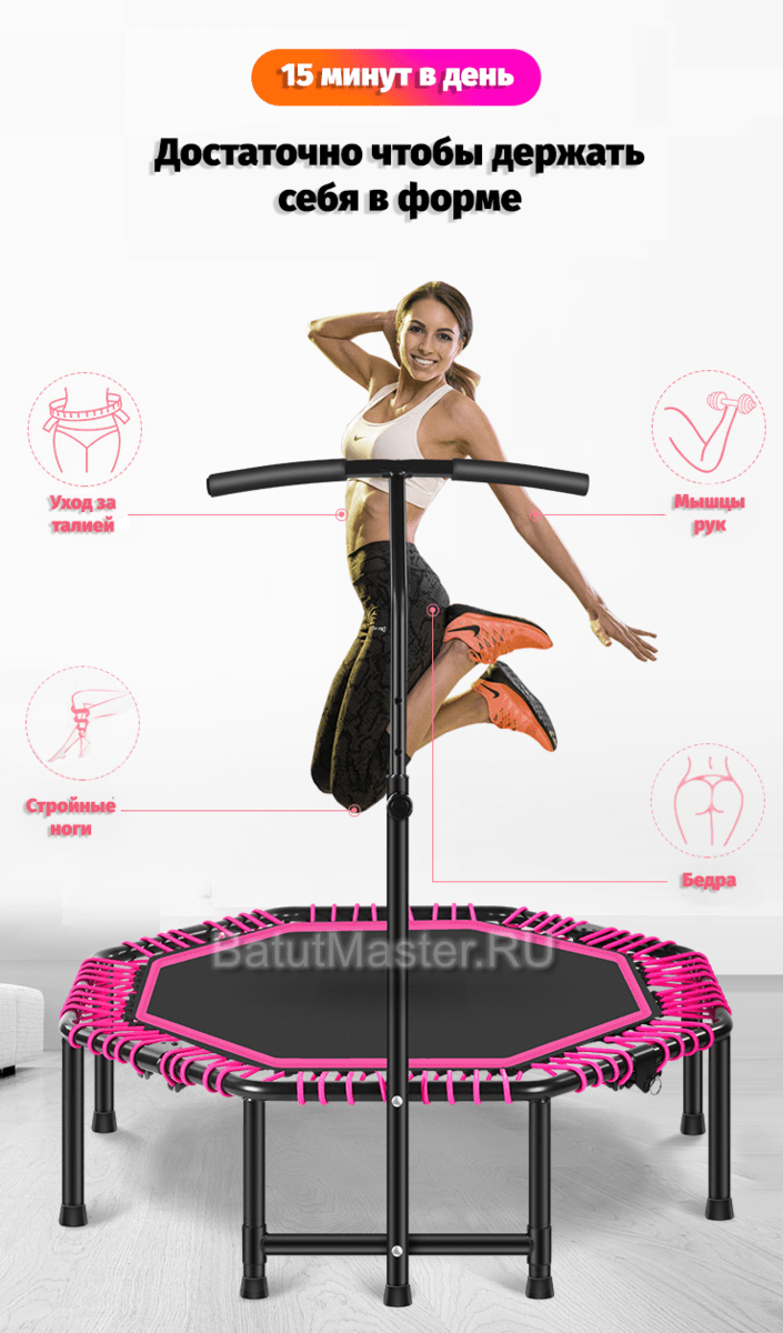 Каркасный батут с Т-образной ручкой (розовый, восьмиугольный, 4 фт) — идеальный выбор для тех, кто ищет стильный, безопасный и эффективный способ оставаться в форме.