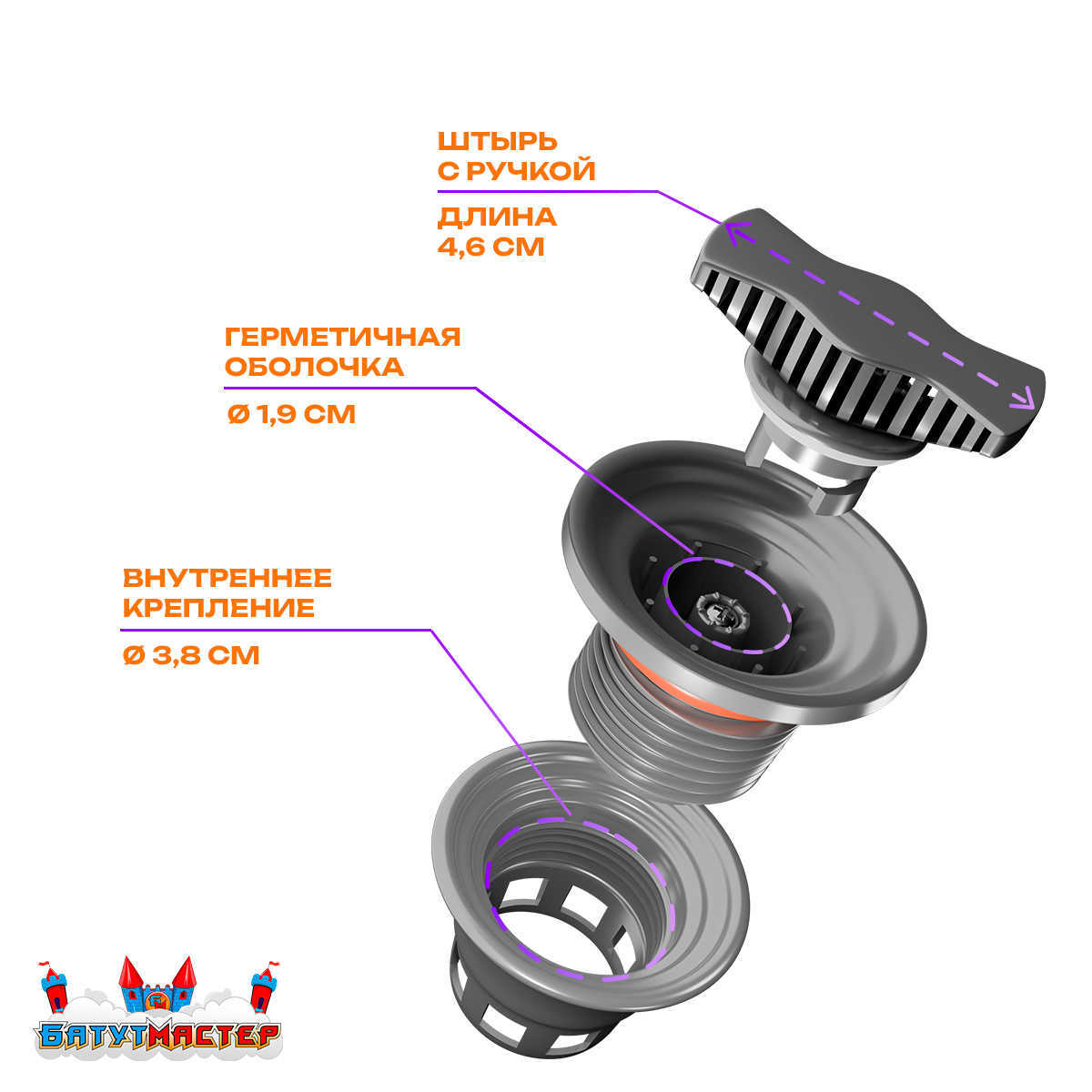 Клапан для водных аттракционов от компании БатутМастер — это прочный, герметичный элемент, который используется для надувных бассейнов, горок и других водных развлечений.