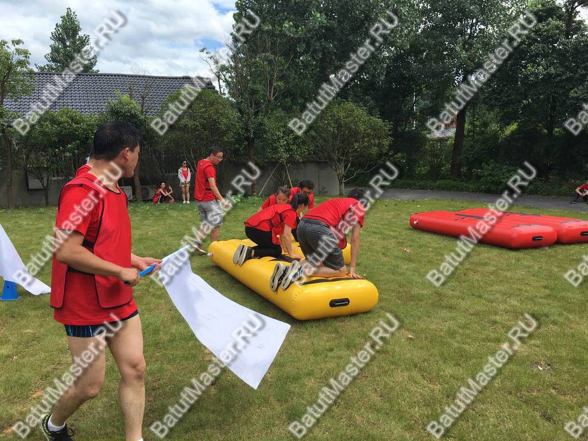 Он представляет собой большие надувные маты по бокам которых находятся держатели. Суть их использования состоит в том, чтобы участники двух команд переставляли маты, на которых стоят и таким образом им необходимо добраться до финиша. Выигрывает та команда, которая быстрее всех переместит два мата.