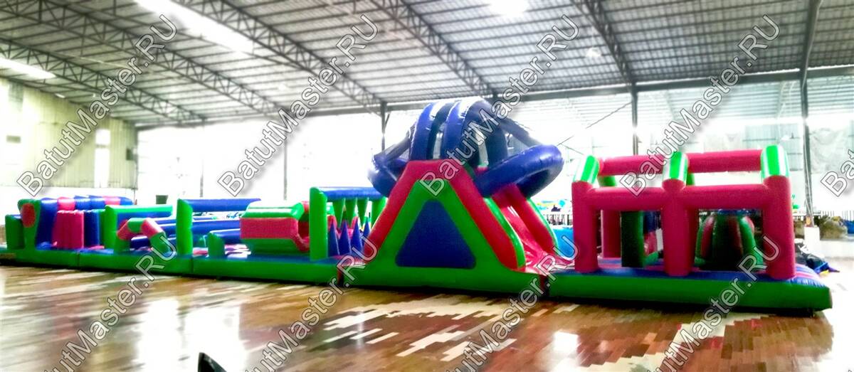 Прямо со входа дети должны будут преодолеть надувные домики-тоннели, после чего их ждут еще вертикальные, горизонтальные модули, представляющие собой полноценные препятствия, позволяющие детям почувствовать себя настоящими спортсменами и полностью погрузится в испытания. Здесь также есть стена-скалодром, через которую спортсменам необходимо перебраться, а затем скатиться словно в горки.