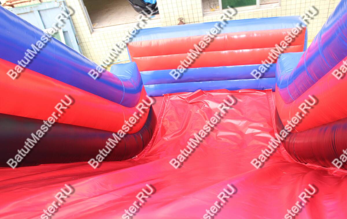 Надувная полоса «Морская стихия» имеет яркую раскраску, сочетая в себе синий и красный цвета. Батут недаром называется полосой препятствий, ведь он способен бросить вызов отважным искателям приключений.
