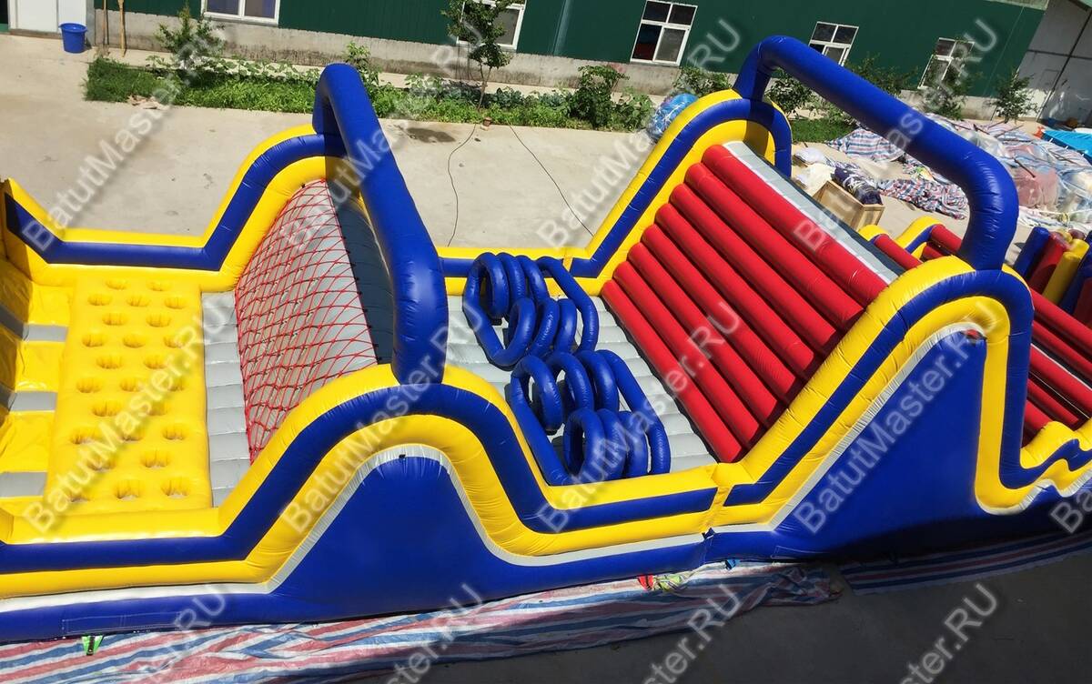 Полоса препятствий «Зона экстрима» - это современный, функциональный комплекс, для развития и улучшения физических показателей у детей, а также для невероятных состязаний. Это не просто надувной батут, это целая арена для приключений. Прямо с входа детям нужно будет преодолеть небольшую горку, спустившись с которой они попадут на не ровную поверхность, проваливаясь на которой им нужно будет перебраться через стену с сеткой. А дальше необычные надувные модули, напоминающие проволоку, через которые пролезть не так просто. Впереди высокая стена с горизонтальными надувными трубами, по которым надо залезть и скатиться вниз. И это еще не все – три небольшие стены и затор из многочисленных надувных вертикальных столбцов будет последним препятствием перед подъемом по мягким ступенькам. Кто дошел первым – тот и стал победителем состязания.