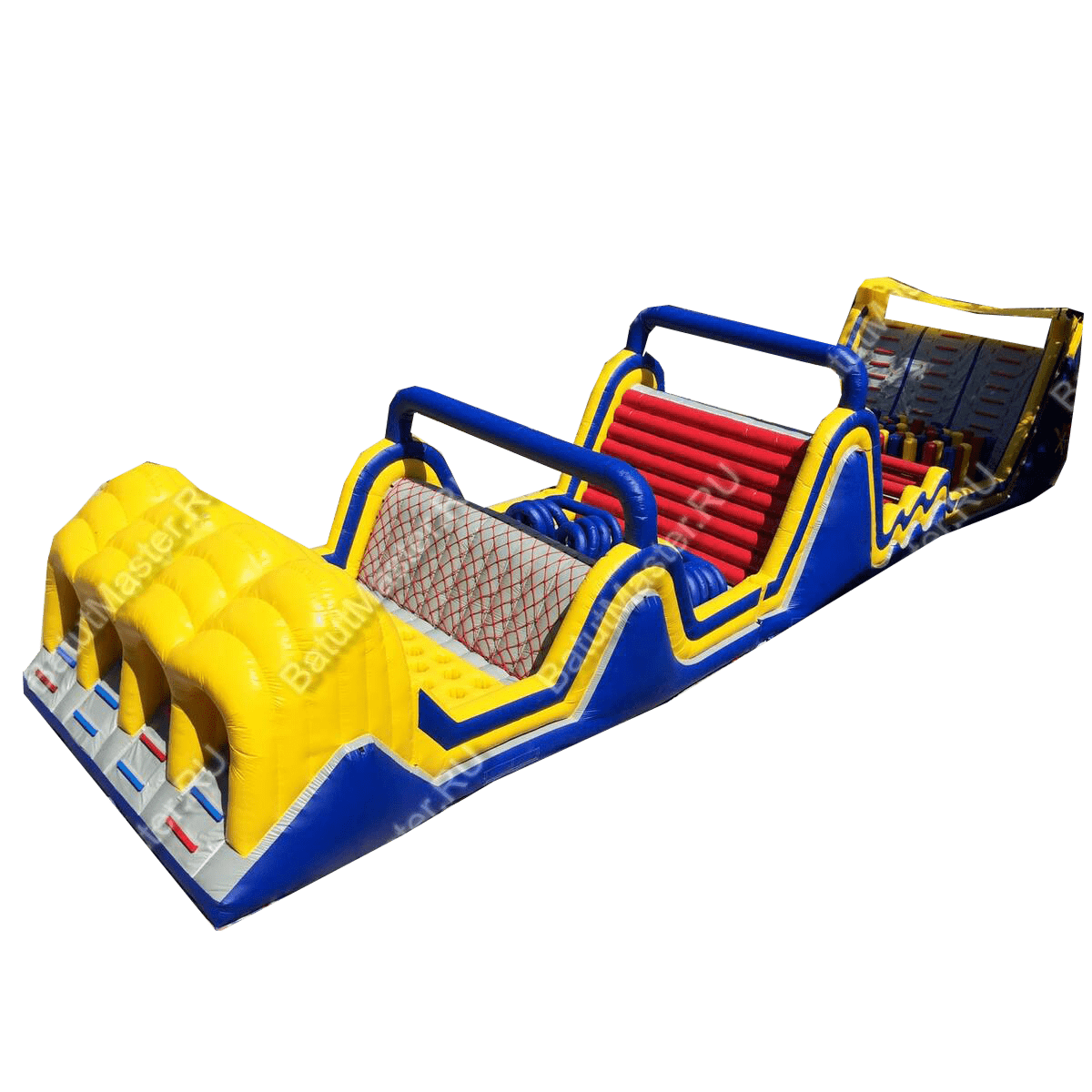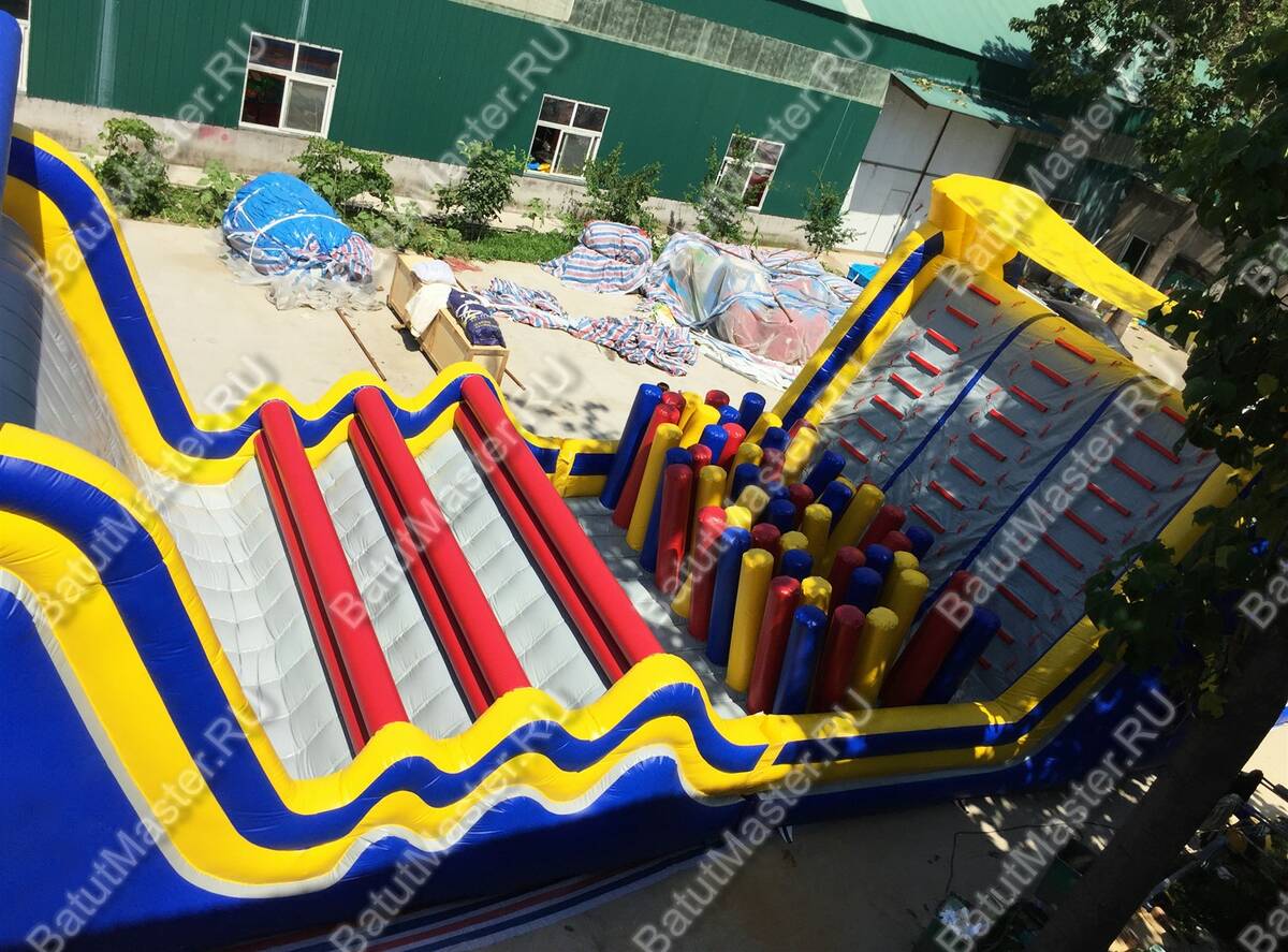 Ребёнок начинает свой путь с лестницы и тоннеля. Тут имеется целых четыре стартовых места, так что состязание будет жарким. Пройдя тоннели, ребёнку предстоит забраться на возвышенность и тут же с неё спрыгнуть, чтобы преодолеть спиралевидные надувные фигуры.