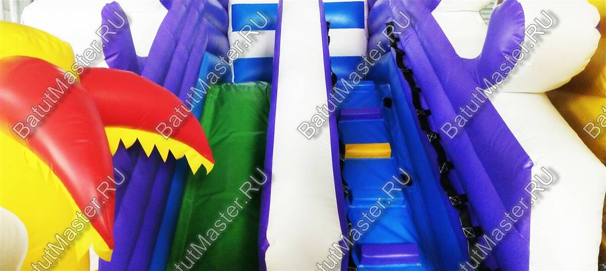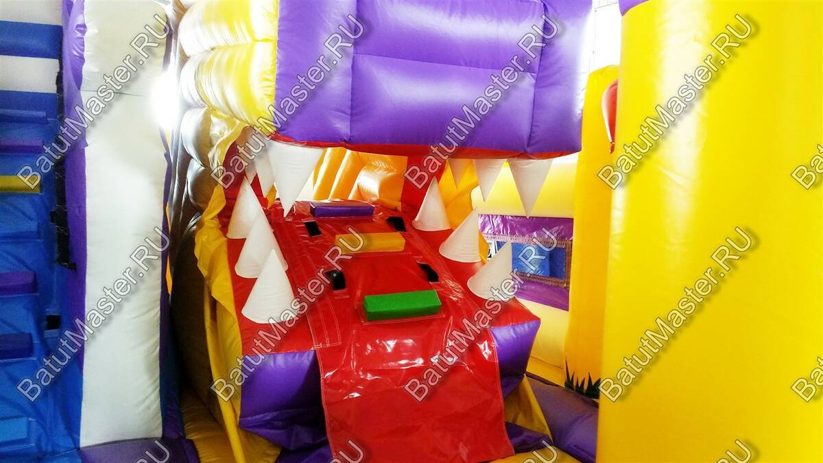 Коммерческий надувной батут «Белый клык» отличается от прочих тем, что, помимо стандартных игровых фигур, имеет механизм – голову, которая будет раскрывать и закрывать пасть. Такое необычное развлечение приведёт детишек в неописуемый восторг, и они обязательно попросят родителей остаться в аттракцион подольше. Механическая голова полностью безопасна, так как пасть закрывается не полностью и имеет мягкую обивку, которая не повредит детям. Для удобства на нижней части пасти есть лесенка, чтобы малыши смогли без проблем проползать в пасти.
