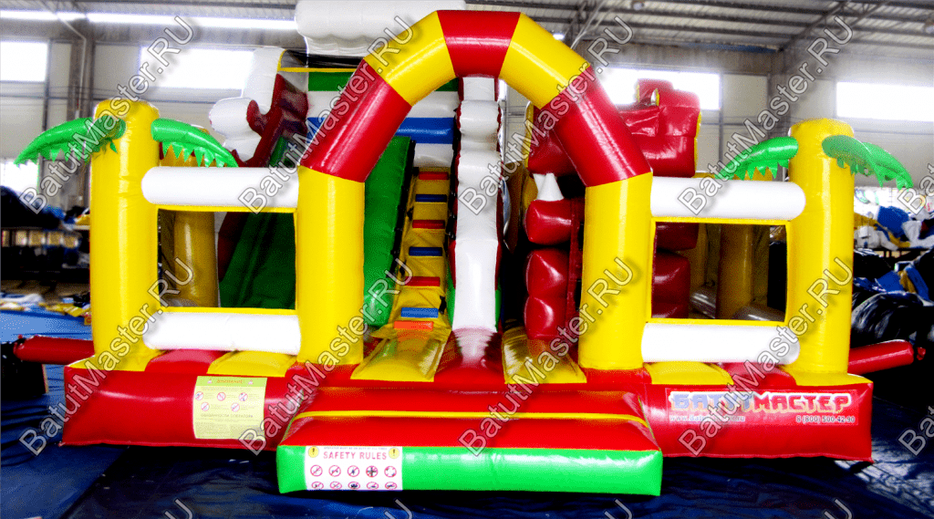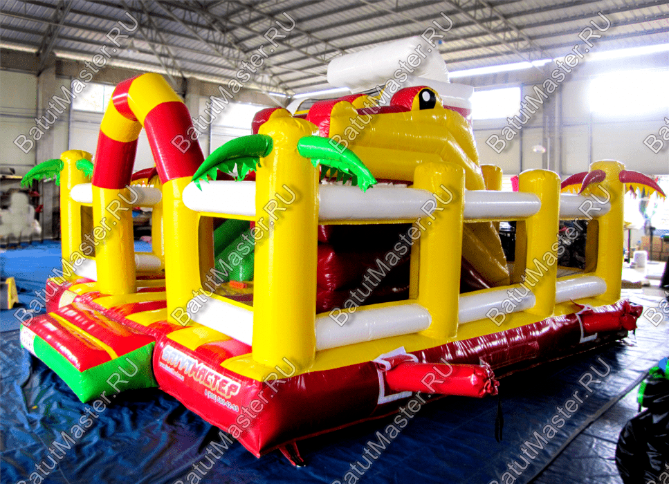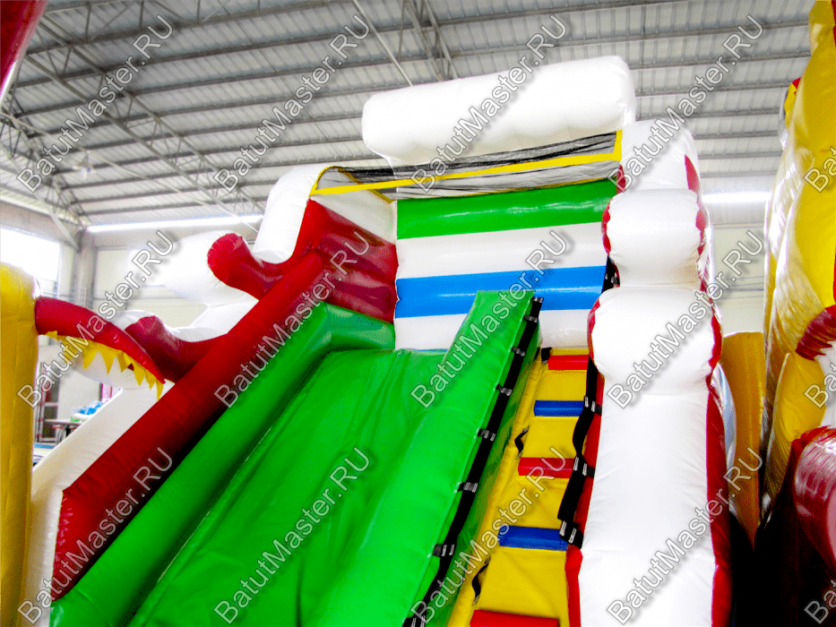 Надувной батут «Белый клык» - практичный с грамотно продуманными локациями и модулями. Подниматься по мягкой лесенке и спускаться вниз с горки очень нравится детям. Преодолевать столбцы препятствий так интересно всей командой. Бегать через ограждения, протискиваться сквозь надувное кольцо и это далеко не все, чем можно заниматься в данном комплексе. Главная особенность комплекса – это голова с клыками. Внутрь нее можно попасть, что станет вдвойне необычным.Коммерческий батут – интересный, яркий и современный игровой центр прекрасно подойдет для размещения в парке, вблизи водоема, гостинице и других учреждениях. Выполнен из качественного ламинированного материала. Он отлично переносит высокую и низкую температуру. Абсолютно безопасен для детей, не имеет твердых предметов и острых углов. По бокам имеются надувные заграждения в человеческий рост, которые предотвращают от выпадения с игровой территории. Со всех сторон он огражден прочной стекой, она позволяет следить родителям за детьми.Комплекс предназначен для бизнеса. Прочный, качественный, яркий с интересным наполнением не останется без внимания детей.