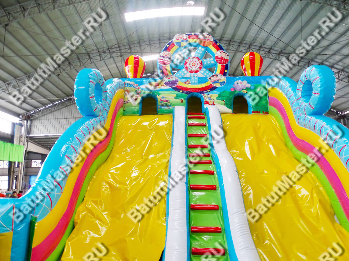 Игровой комплекс «Летняя прогулка» перенесет детей в мир веселых приключений и незабываемых эмоций. Здесь каждая деталь интересна и притягивает взгляд. Широкие горки с резким спуском, которые так любят дети, ведь с них одновременно могут спускаться несколько детей, а также горка для малышей, волнообразный подъем, тоннель, надувные собачки, котики и многое другое.