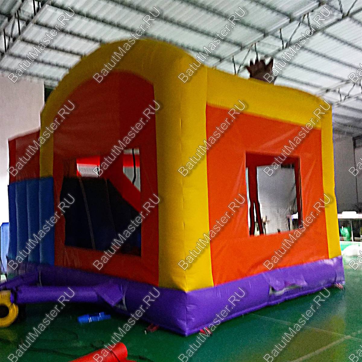 Играть здесь комфортно и самое главное безопасно. Батут не имеет жестких элементов, а по всему периметру есть окошки из прочной сетки, поэтому дети не выпадут наружу и всегда останутся на виду у родителей. Вход в комплекс на батут фиксируется молнией, чтобы дети не выпали наружу во время игр. У батута есть крыша, что является большим преимуществом и защитит детей от прямых лучей солнца, дождя и ветра. Предназначен для бизнеса.