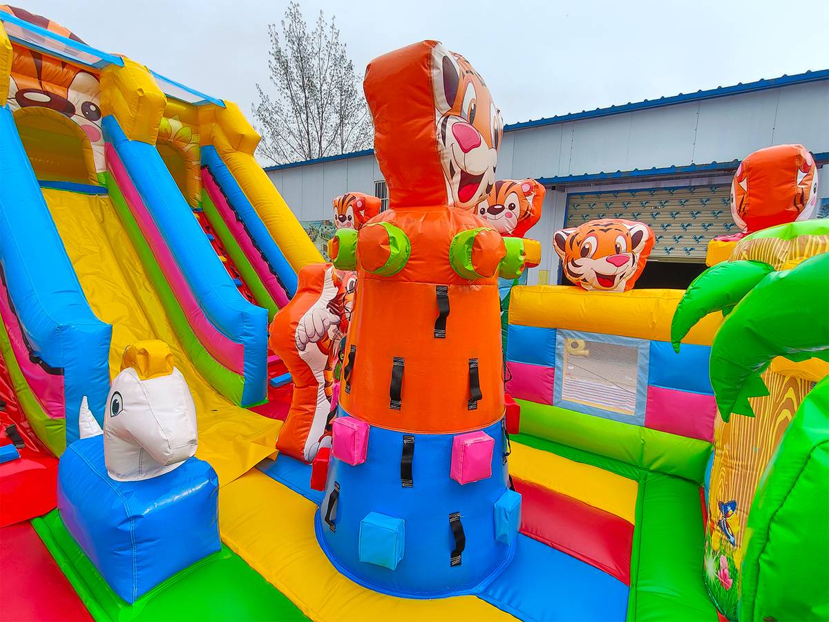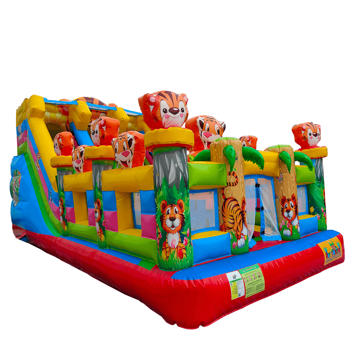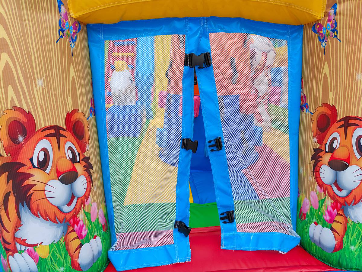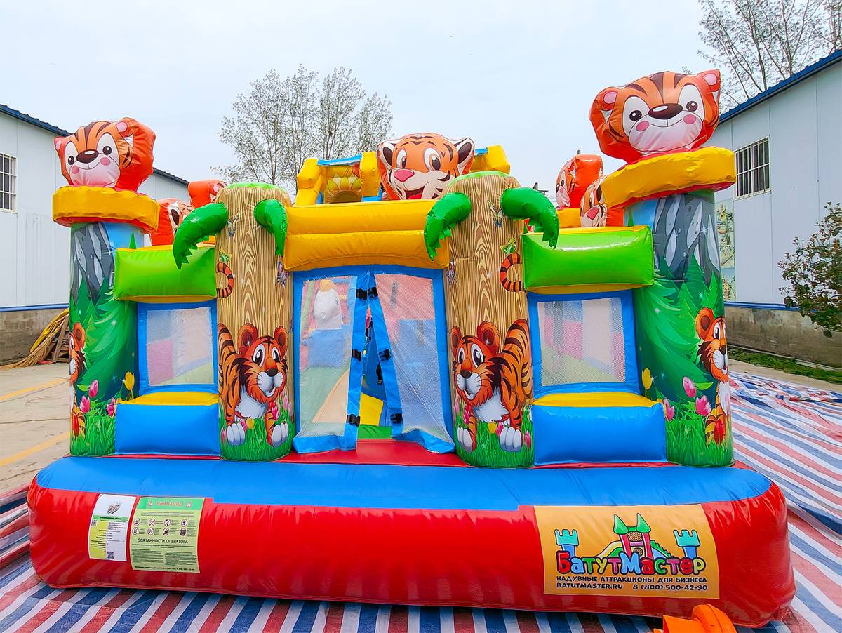 Увлекательные приключения ждут мальчишек и девчонок в комплексе «Тигриная страна 2». Здесь найдут себе занятие по душе дети от двух лет и старше. Надувной батут оснащен горками разной величины, скалодромом, надувными модулями в виде кольца, тоннеля и конечно же, тигрят, которых здесь так много, и они все разные. Над горкой имеются домики, где можно поиграть в прятки. Это целая арена для бега, веселых игр, а также тренировки и улучшения физических показателей у детей. Вокруг все яркое и притягивает взгляд.