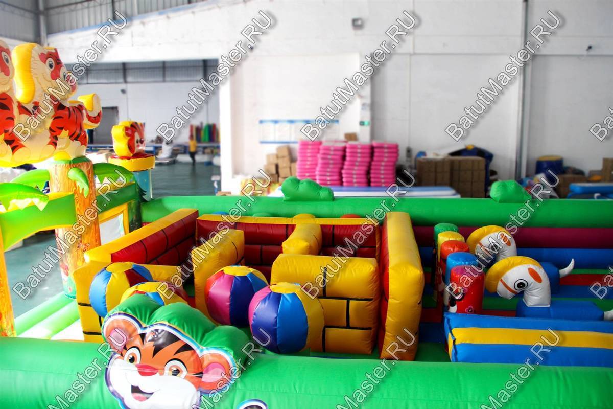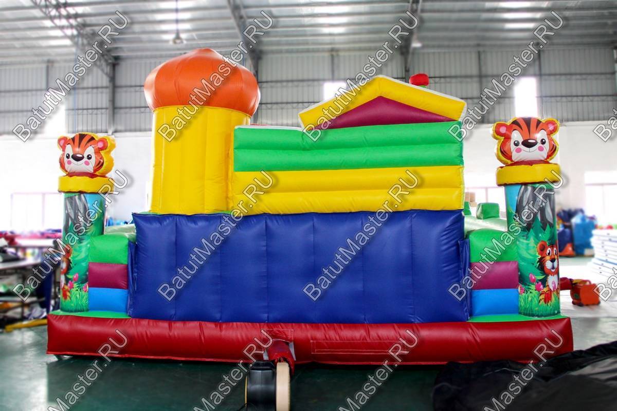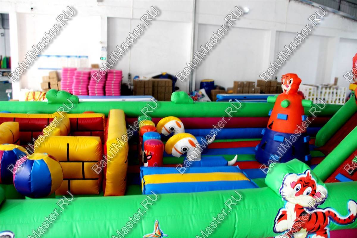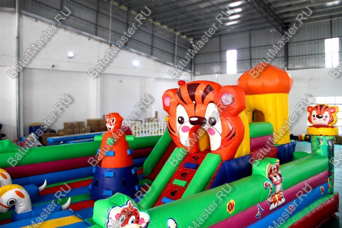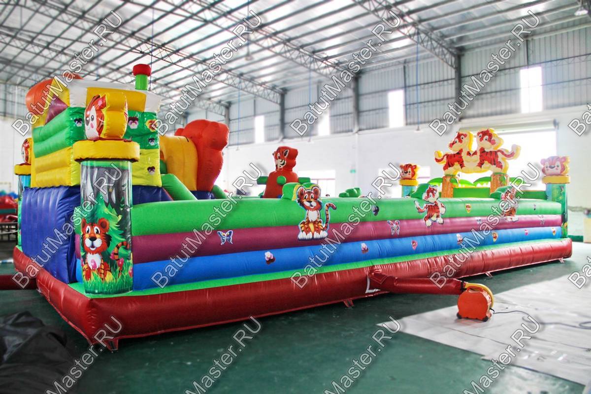 Коммерческий батут с достаточно вместительными размерами 12 на 6 м станет идеальной платформой для бизнеса и сможет приносить достойную прибыль, даже существуя самостоятельно. Главным персонажем надувного батута является тигр, а точнее, тигрята, мягкие формы этих животных здесь можно увидеть почти везде, начиная с фасада.