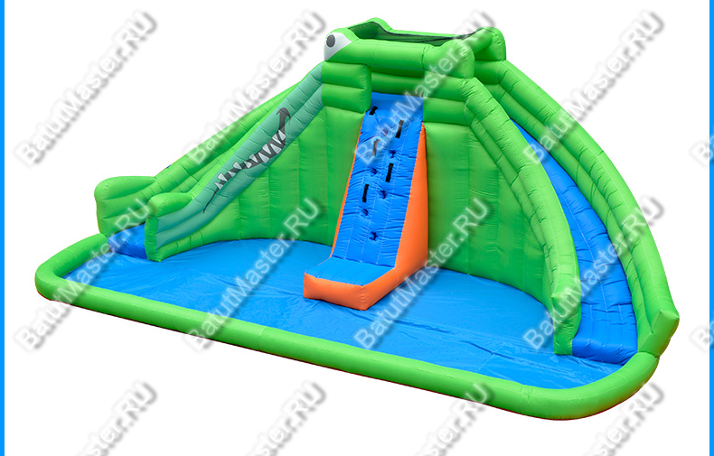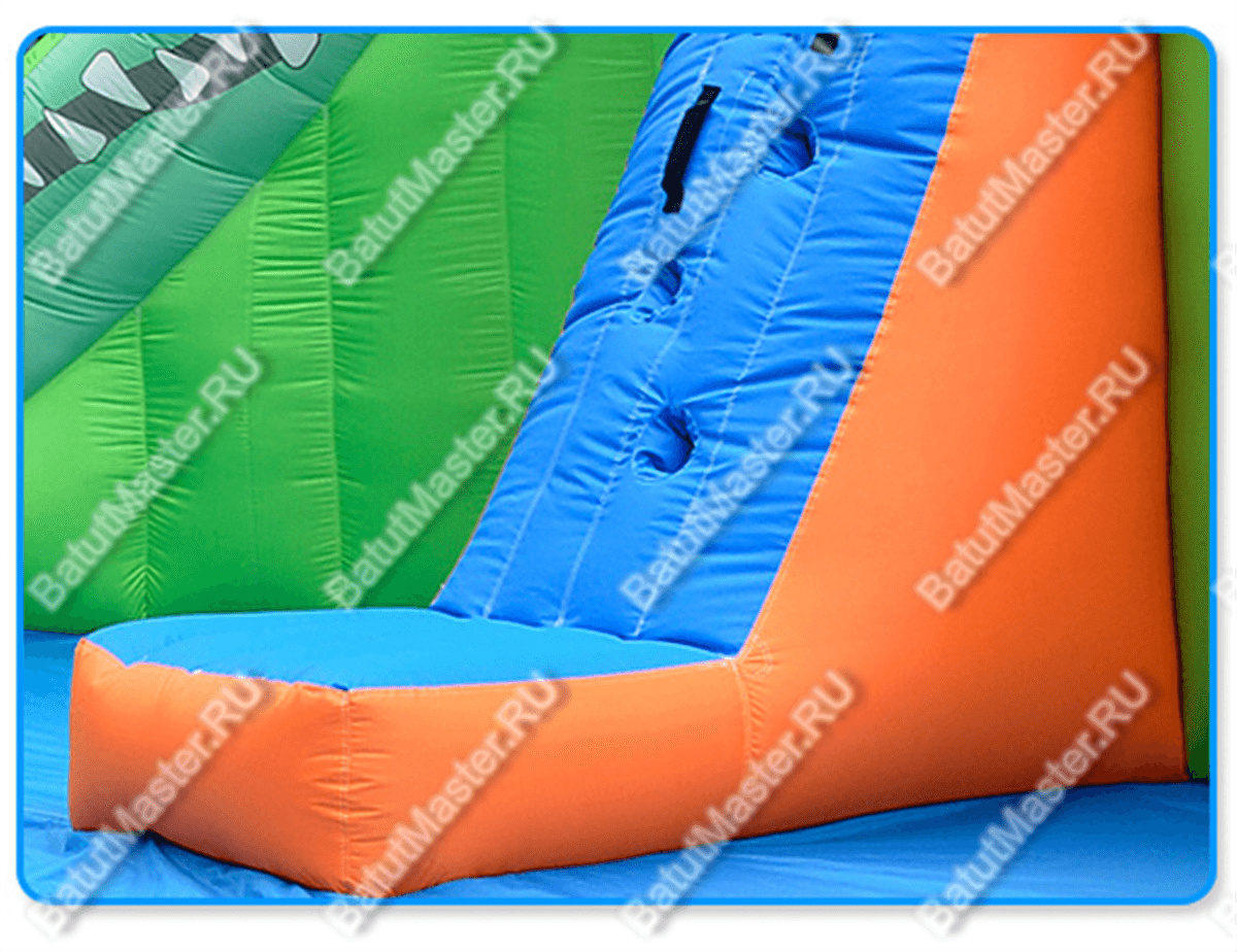 Необычный и интересный надувной батут «В гостях у крокодильчика» рассчитан для веселого времяпровождения детей. Он выполнен в нестандартной форме, а именно по краям батута имеются две горки, а посередине подъем, так вот левая горка это и есть голова крокодила, где отчетливо видны глаза и рот. Внизу есть большое поле для прыжков и кувырканий. Дети непременно оценят такую модификацию и захотят вернуться сюда не раз. Прыжки и игры на таком батуте развивают ловкость и координацию движений, а это так важно в период их развития. Несмотря на необычную форму, он без труда устанавливается в любом месте на улице или в помещении.